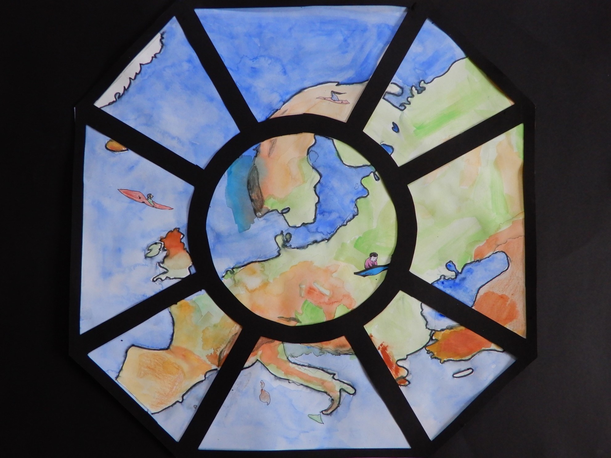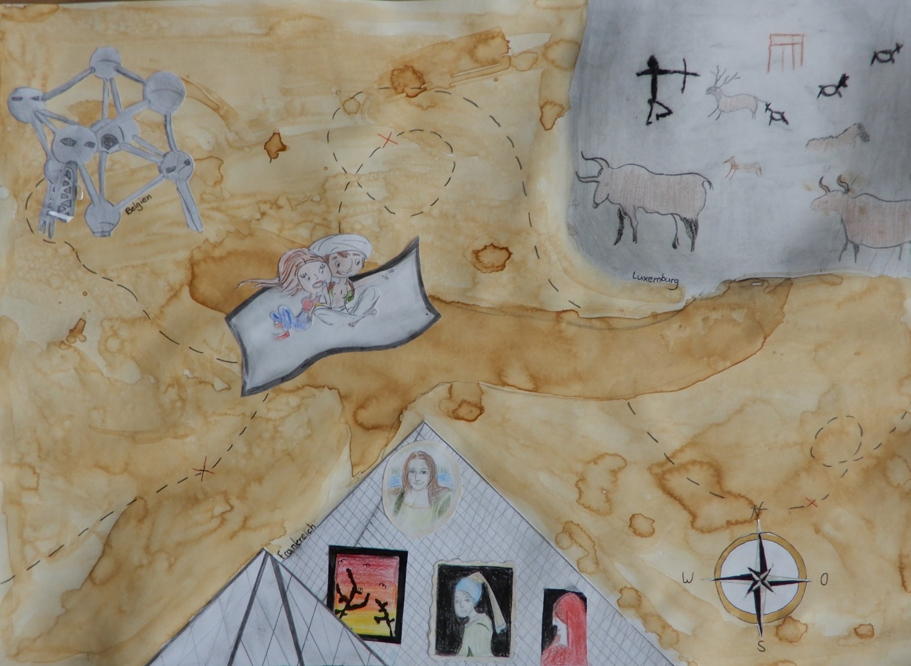 Die Klassen 6 bis 7 wählten entweder aus Modul 2 das Thema „Reise durch Europa“, wobei sie mit Freunden auf einem fliegenden Teppich Landesgrenzen überqueren und gemeinsame Erlebnisse in Europa haben oder sie entschieden sich für das Thema „Fabelhaft“ und konnten eine eigene Fabel oder ein europäisches Fabelwesen kreieren und die verschwimmenden Grenzen zwischen Menschen, Tieren, Pflanzen und Dingen darstellen.