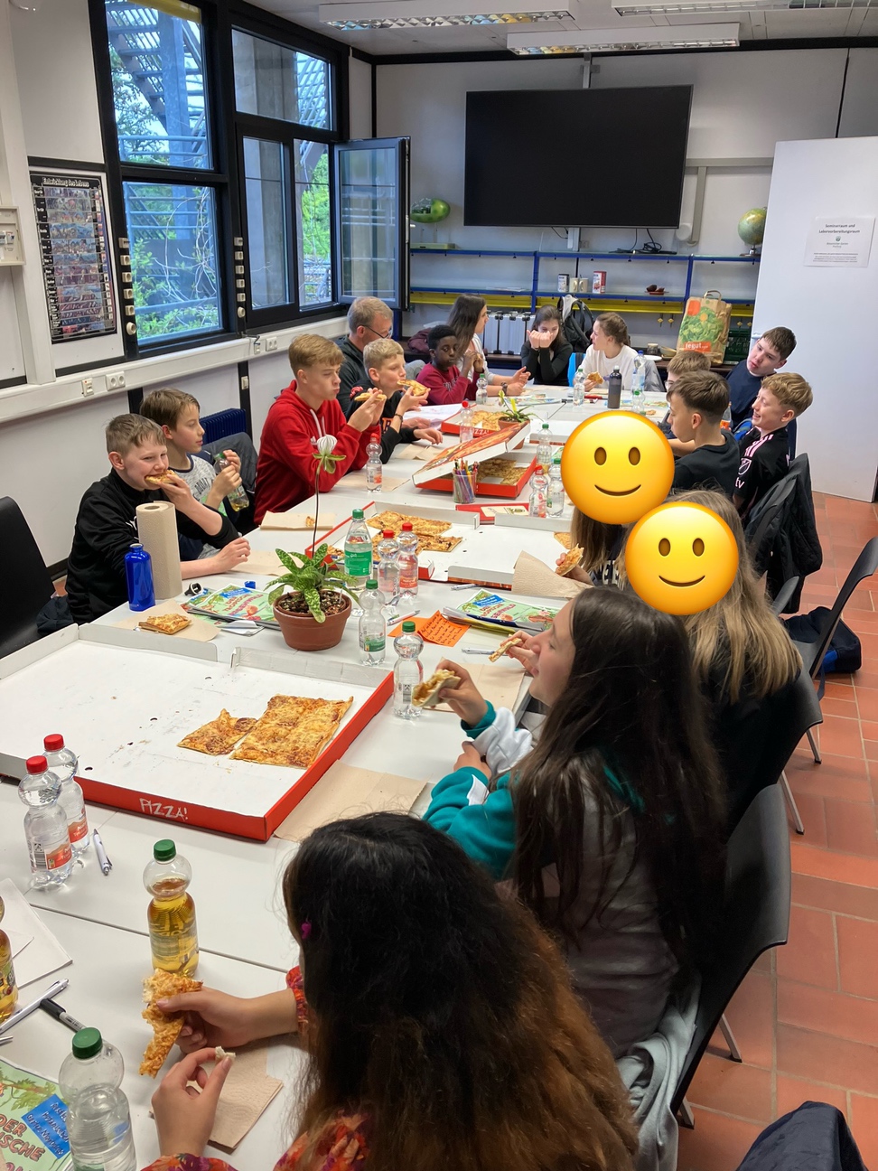 Nach vier normalen Unterrichtsstunden war es so weit: Vom Gladenbacher Busbahnhof aus fuhren wir gemeinsam mit Herrn Weinrich und Frau Kalabis nach Marburg-Lahnberge, wobei wir einmal umsteigen mussten. Nach einem kleinen Fußmarsch kamen wir endlich beim Botanischen Garten an. Im Hauptgebäude, das direkt am Tropenhaus liegt, gab es zunächst eine Verschnaufpause mit vielen leckeren Snacks, darunter auch Fairtrade-Schokolade. Nebenbei gab es eine Einführung mit Herrn Deurer, der nicht nur an unserer Schule, sondern auch im Botanischen Garten arbeitet. Nach der Pause wurden Gruppen gebildet, und jede Gruppe bekam einen kleinen Koffer mit verschiedenen Messinstrumenten: Einem Luxmeter zum Messen des Lichteinfalls, einem Hygrometer zum Messen der Luftfeuchtigkeit und einem Thermometer, natürlich zum Messen der Temperatur. Mit Hilfe der Messinstrumente konnten wir die Werte im Wüsten- und Tropenhaus sowie im Freien miteinander vergleichen. Im Tropenhaus arbeiteten wir mit einem Heft, das wir weiterhin im Geographie-Unterricht benutzen. Es gab Aufgaben zum Stockwerkbau des Tropischen Regenwaldes, zu Nutzpflanzen, zum Nährstoffkreislauf und zum Kakao. Vieles davon haben wir vorab im Geographieunterricht behandelt und konnten nun unser Wissen anwenden und überprüfen. Zum Glück gab es im Tropenhaus keine Vogelspinnen oder Ähnliches Dafür aber für unsere Gegend ungewöhnliche Pflanzen wie Bananen- und Kakaobäume, Ananaspflanzen, Orchideen, Kautschukbäume und Kaffeepflanzen uvm. Neben dem Tropenhaus lernten wir auch das Wüstenhaus mit seinen besonderen Pflanzen kennen. Natürlich hatten wir nach der Erkundung noch etwas Freizeit. Wir konnten frei durch den Botanischen Garten mit seinem großen Außengelände schlendern, uns unterhalten und spielen. Es war herrlich! Außerdem gab es ein Gruppenspiel mit der ganzen Klasse, bei dem es darum ging, nach einem Impuls so schnell wie möglich der Reihe nach die Hände zu drücken und sich eine Flasche zu schnappen, bevor die andere Gruppe es tat. Zum Schluss gab es leckere Pizza. Gegen 20 Uhr wurden wir schließlich von unseren Eltern abgeholt.