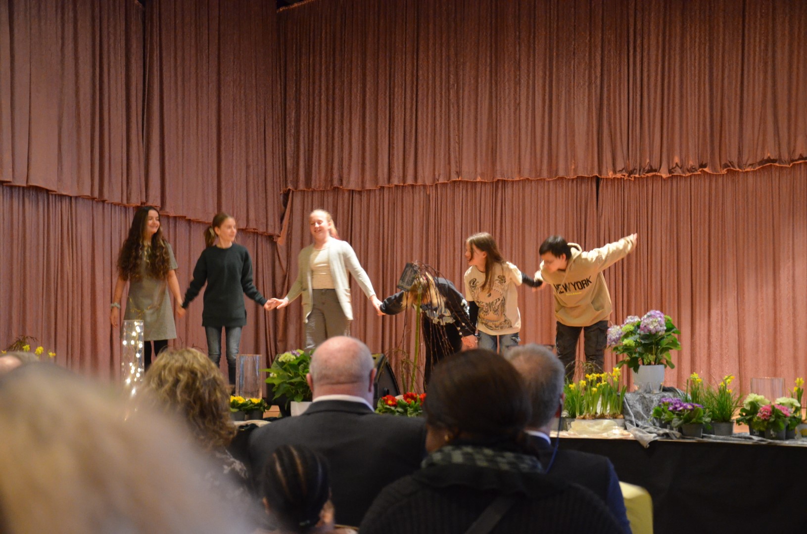 Musikalisch eröffnet wurde die Preisverleihung durch zwei Beiträge der von Ralf Erkel geleiteten Show-AG, die sowohl auf spanisch als auch auf englisch glänzen konnten. Im Anschluss nahmen uns einige Schüler:innen der Förderstufe mit an zwei besondere Orte: Im „Schwimmbad“ und „Auf der Kirmes“ lernten wir die Theater-AG von Frau Finke kennen.