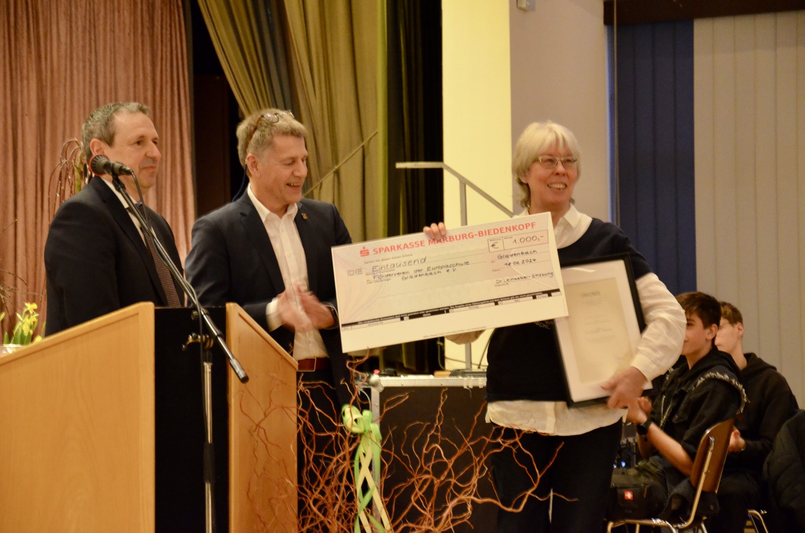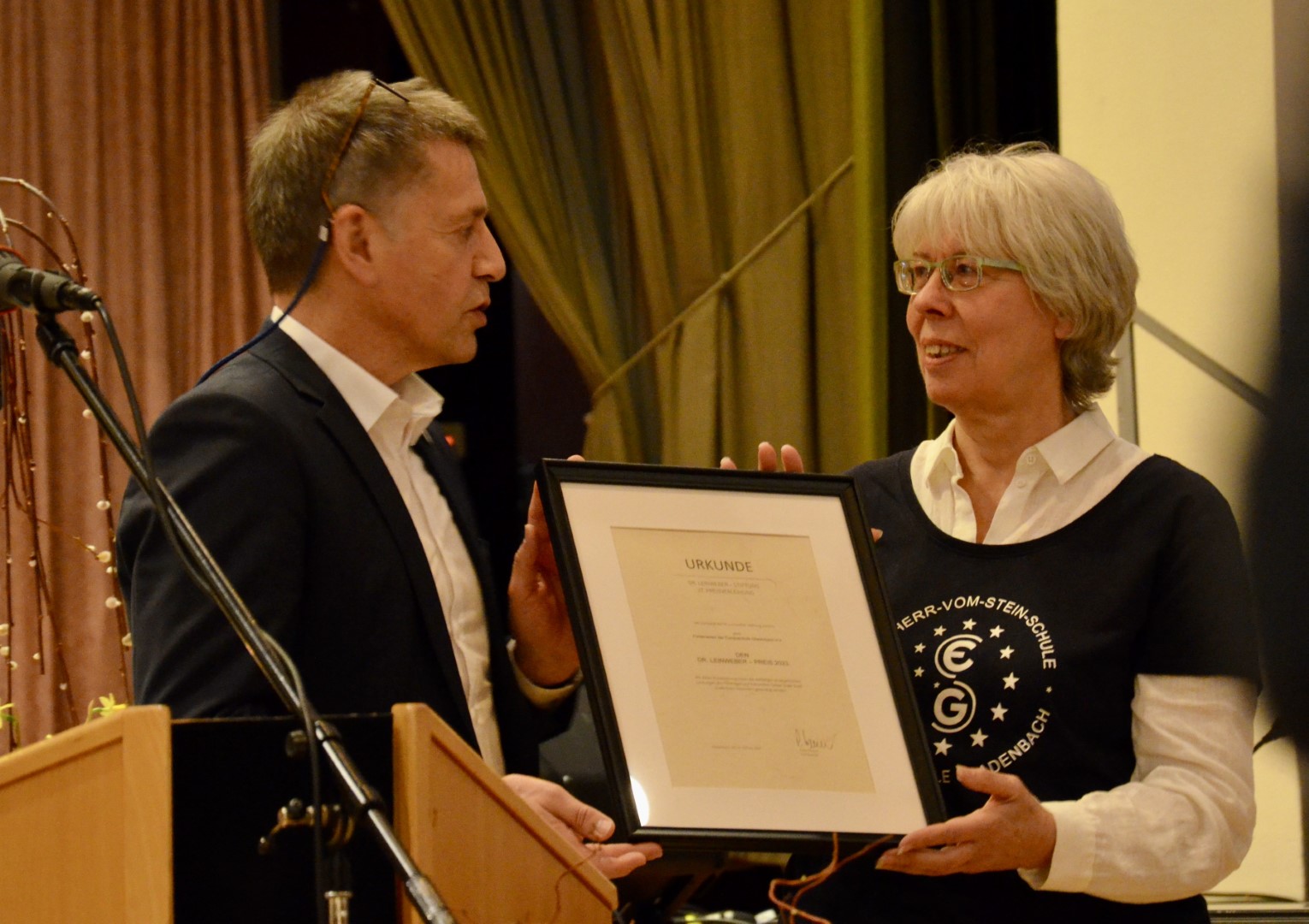 Der Förderverein der Europaschule Gladenbach ist der 37. Preisträger des Dr.-Berthold-Leinweber-Preises. Der wichtigste Kulturpreis der Stadt Gladenbach wurde zusammen mit einer Spende von 1000€ am 18. Februar 2024, dem Geburtstag von Dr. Berthold Leinweber, stellvertretend an die Vorsitzende des Fördervereins, Edith Müller-Zimmermann, übergeben. Begleitet wurde die Preisverleihung durch wertschätzende Reden über den Stiftungsgründer sowie den Preisträger selbst als auch Beiträge verschiedener Art durch die Schülerschaft.