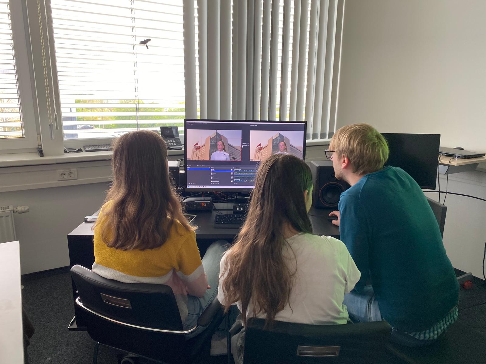 Einen weiteren Blick in die Medien bot der Ausflug in das Filmstudio des Medienzentrums Lahn-Dill in Wetzlar, in welchem die Schülerinnen und Schüler eine eigene Nachrichtenshow aufnehmen konnten. Thematisch konzentrierten sich diese alle auf ein Zukunftsthema, wie z.B. ein fiktiver Bericht über einen neu entwickelten Impfstoff gegen Krebs.