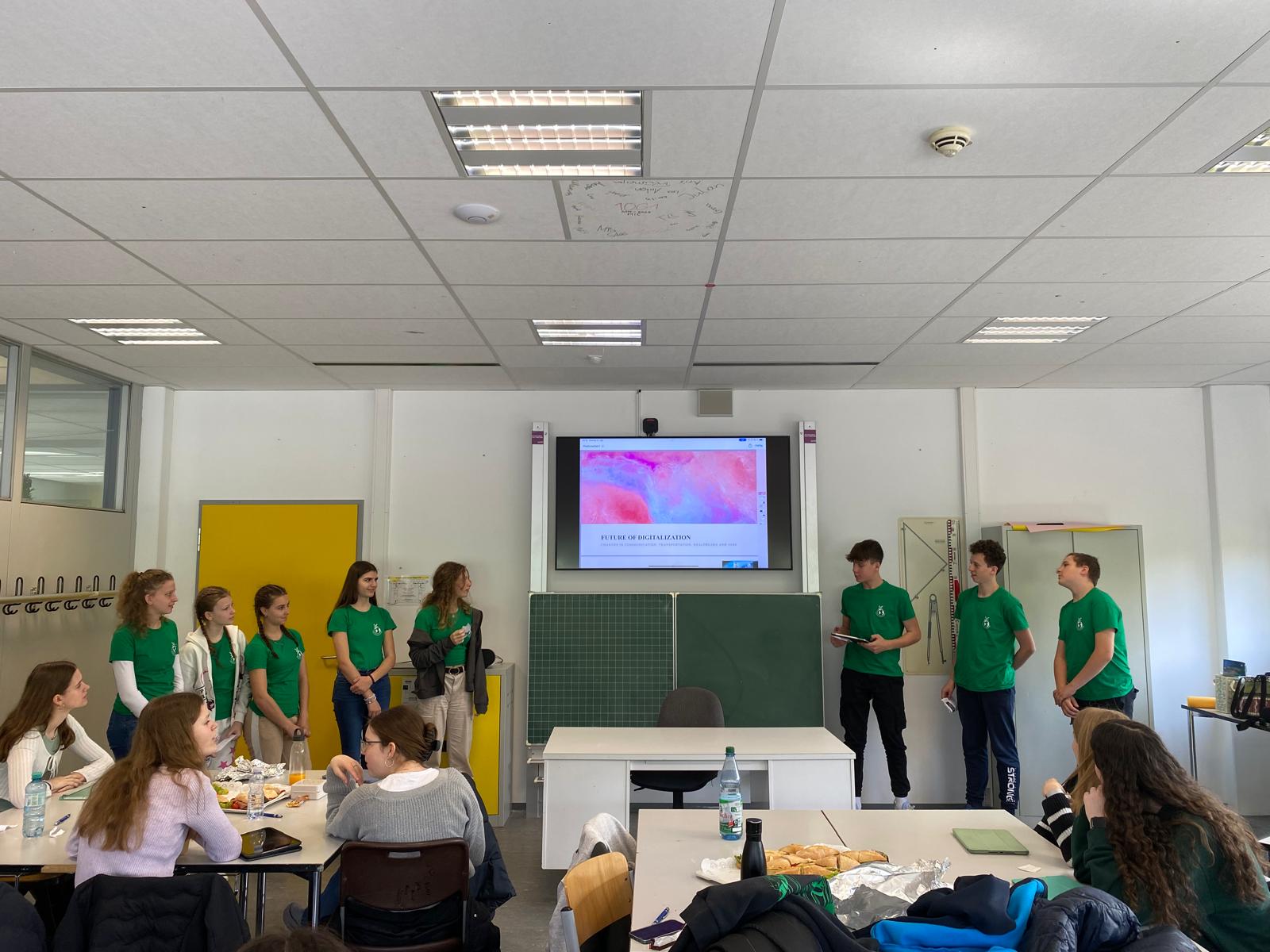 Vom 22. bis 26.04.2024 besuchten Gäste aus Spanien und Slowenien unsere Europaschule im Rahmen des Erasmus-Plus-Projekts „Digital me“. Geleitet und vorbereitet wurde der Besuch von unserer Englisch-/Physik-Kollegin und Erasmus-Beauftragten Isabell Youngkin und unserem pensionierten Kollegen Wolfgang Borschel. Während der gemeinsamen Woche beschäftigten sich alle intensiv mit spannenden Zukunftsthemen. Insgesamt 13 Schülerinnen nahmen aus unserer Schule daran teil: fünf Schülerinnen aus der 9G2, vier Schülerinnen aus der 9G3 sowie vier Schülerinnen aus der 10G2.