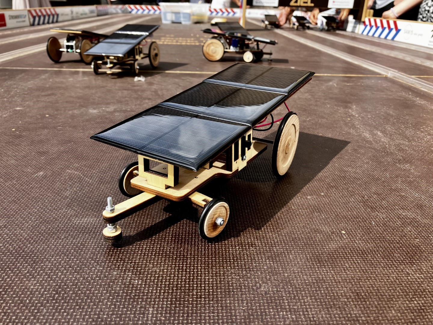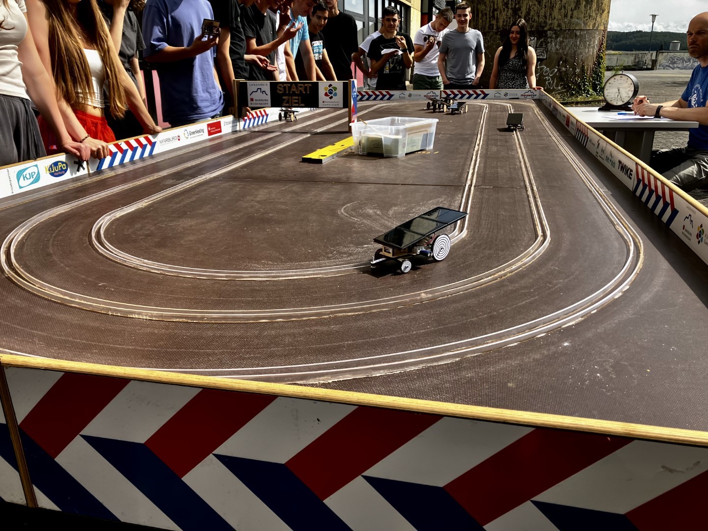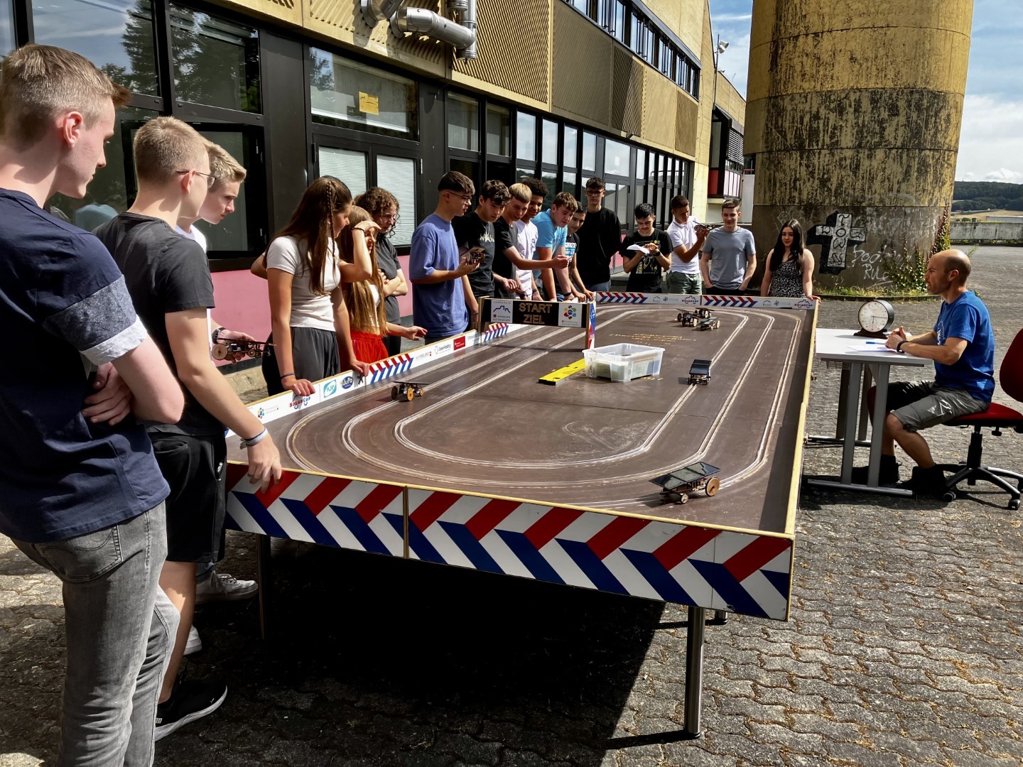 Beim SolarCup erleben Schülerinnen und Schüler die Anwendung von Technik mit Sonnenenergie kombiniert mit viel Spaß und Teamgeist. Im Rahmen des Physikunterrichts haben Jochen Mankel-Pfeiffer und Christian Michel ihre Klassen an das Thema Solarenergie herangeführt. Dabei stehen Energieeffizienz und Nachhaltigkeit im Mittelpunkt des Projekts. Am Freitag, den 14. Juli 2023, stand der Abschluss des Projekts an: Die solarangetriebenen Modellfahrzeuge wurden zuvor im Unterricht in Teams zusammengebaut und traten dann beim SolarCup gegeneinander an. Nach acht Vorrunden, dem Halbfinale und dem Finale stand das diesjährige Siegerfahrzeug fest: „MRM-Racing“ aus der Klasse 10G1, sie konnten die Energie der Sonne am besten nutzen und ließen den „motivierten Waschbären (10G3) auf dem zweiten und „AGY 2006“ (10G2) auf dem dritten Platz zurück.