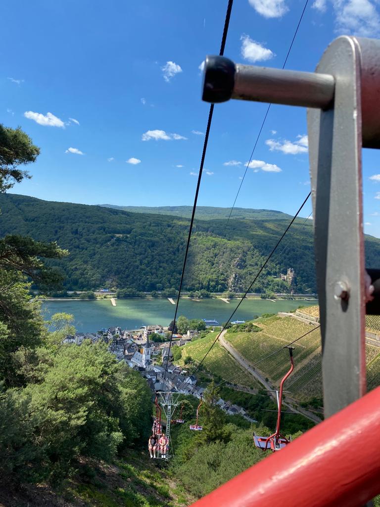 Die drei Monate danach vergingen schnell und schon waren wir diejenigen, die unsere Austauschpartnerinnen und Austauschpartner vom Bus in Gladenbach abholten. Obwohl wir diesmal bei uns Zuhause wohnten und keine fremden Städte besuchten, war der zweite Teil des Austauschs nicht weniger spannend. Wir haben uns alle gefreut, die Amerikaner wieder zu sehen und auch für unsere Eltern war es sehr spannend, sie kennenzulernen. Als sie angekommen waren, begann gerade ein langes Wochenende, das hieß viel Zeit für Ausflüge und Unternehmungen mit der Familie oder den anderen Teilnehmerinnen und Teilnehmer. Neben einem gemeinsamen Grillabend mit den Eltern fuhren viele in Städte wie Frankfurt oder Köln, manche machten auch weitere Fahrten nach Luxemburg oder Frankreich. Die alten Häuser in den deutschen Städten waren für viele Amerikanerinnen und Amerikaner besonders interessant, deswegen wurden auch zahlreiche Schlösser und Kirchen besichtigt. Nach dem Wochenende kamen unsere Austauschpartnerinnen und Austauschpartner mit in die Schule und am Mittwoch machten wir alle zusammen einen Ausflug an den Rhein. Dort erlebten wir eine Bootsfahrt, fuhren mit einer Seilbahn und sahen uns Rüdesheim an. Wegen des warmen Wetters waren wir in dieser Woche öfters im Freibad oder am See schwimmen und auch Tretboot fahren auf der Lahn war beliebt.