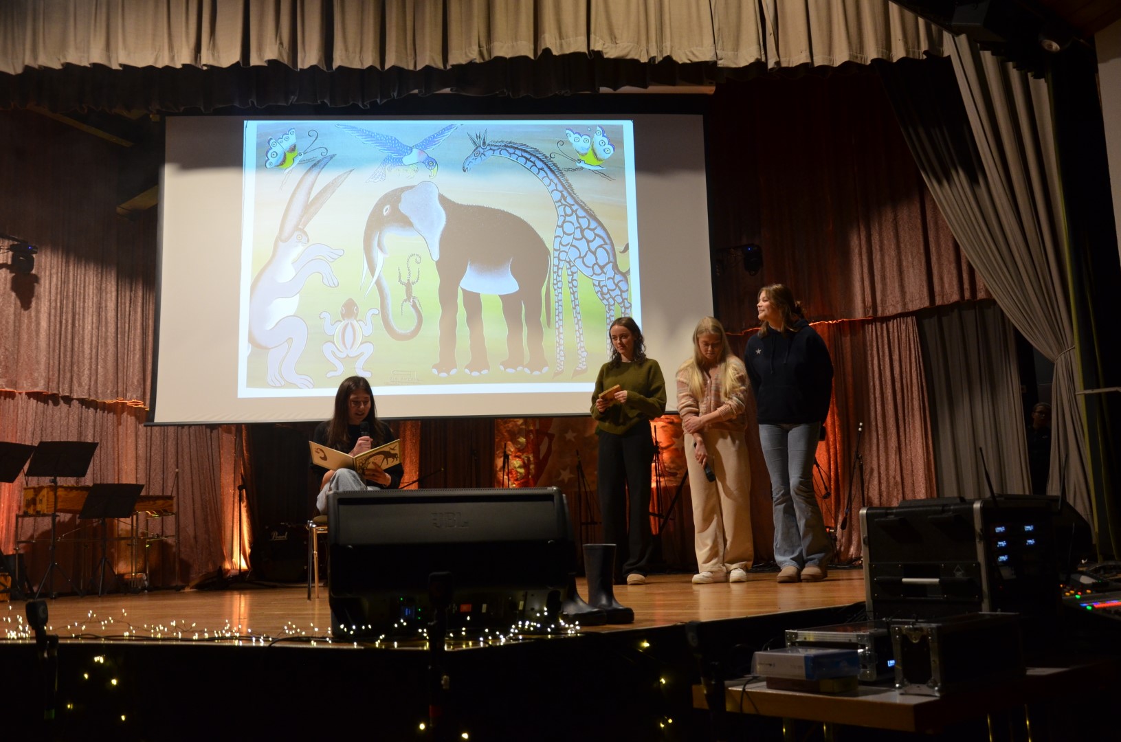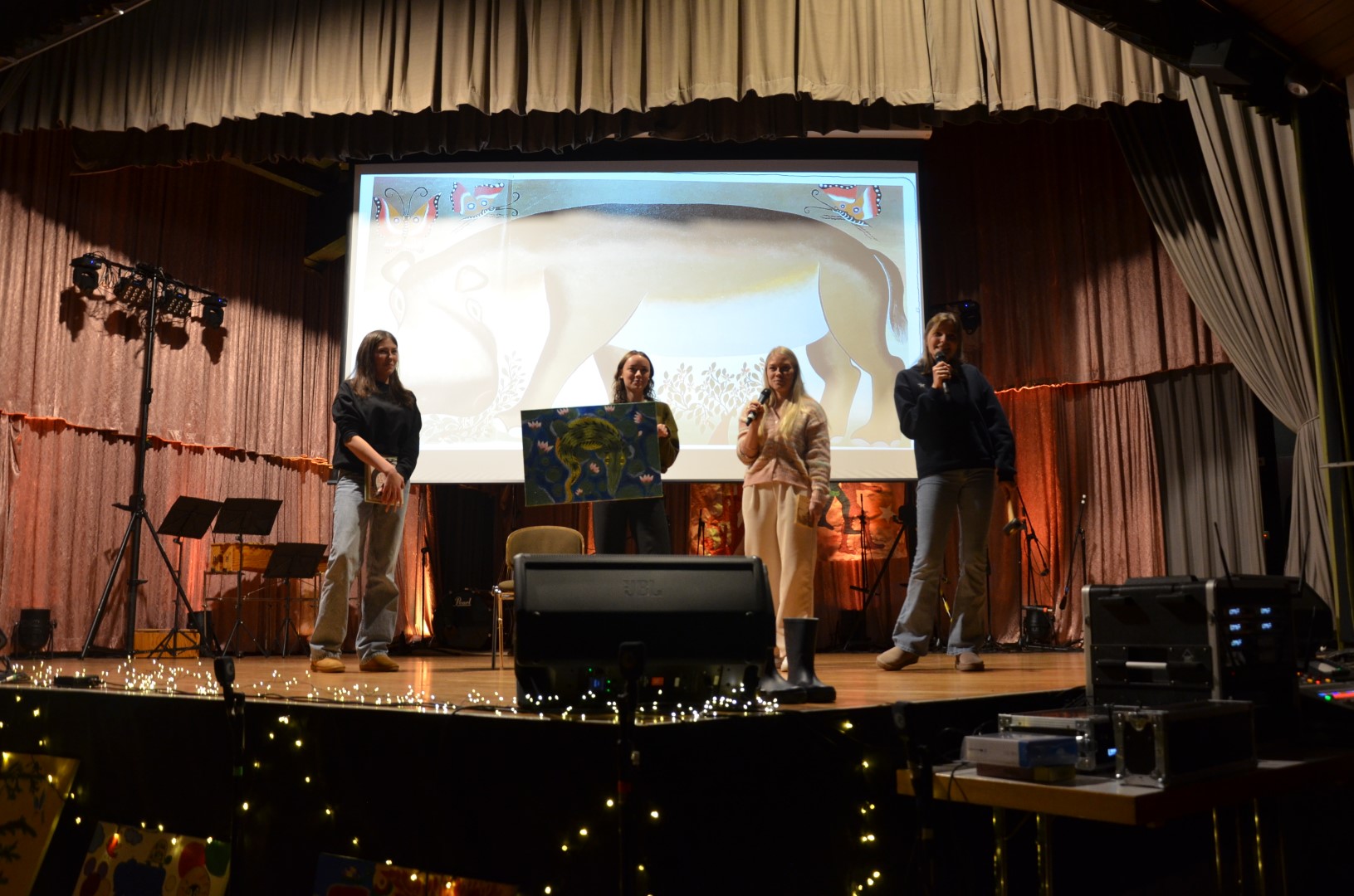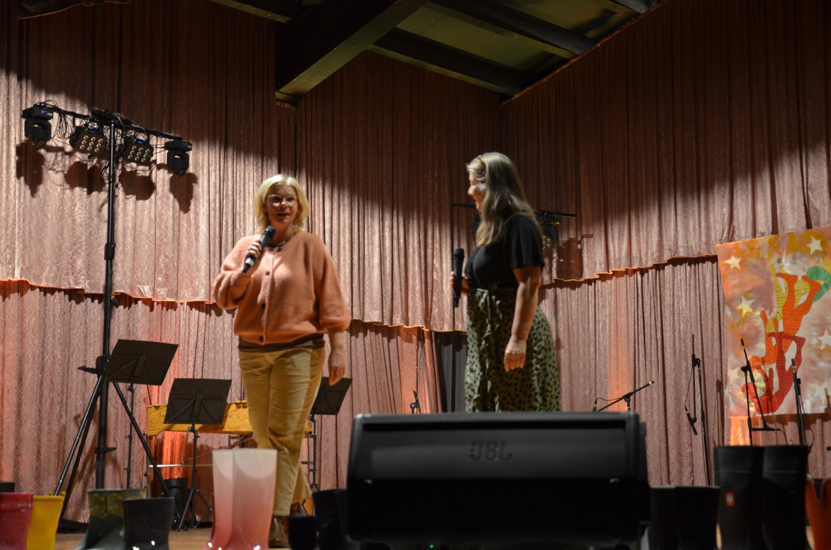 Der wunderbar herbstliche „Anstrich“ der Bühne im Haus des Gastes wurde von Fr. Endrigkeit-Ecker gestaltet. Die passende Beleuchtung und weitere Technik des Abends übernahmen auch dieses Mal wieder Niko Hausner mit seinem engagierten Team.