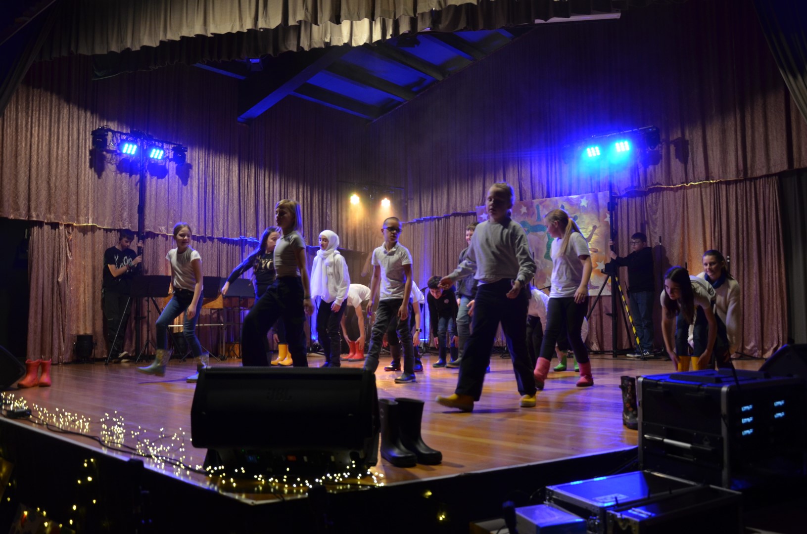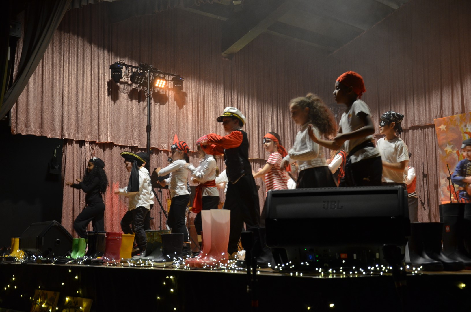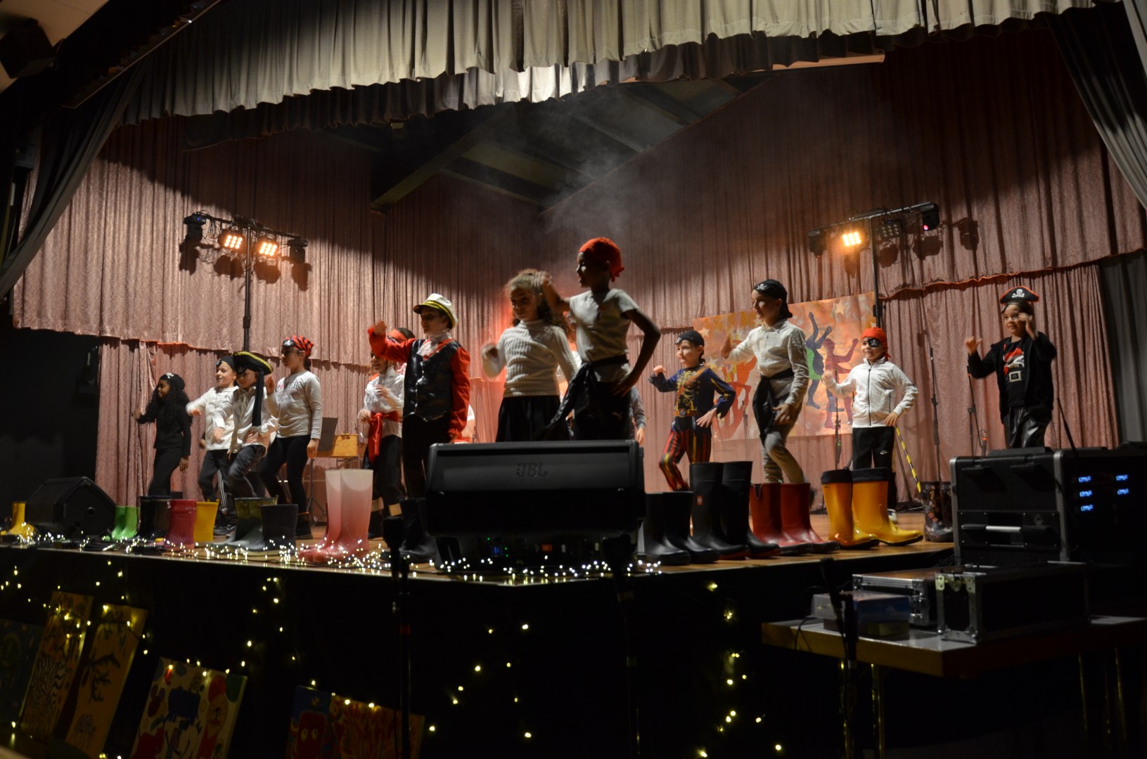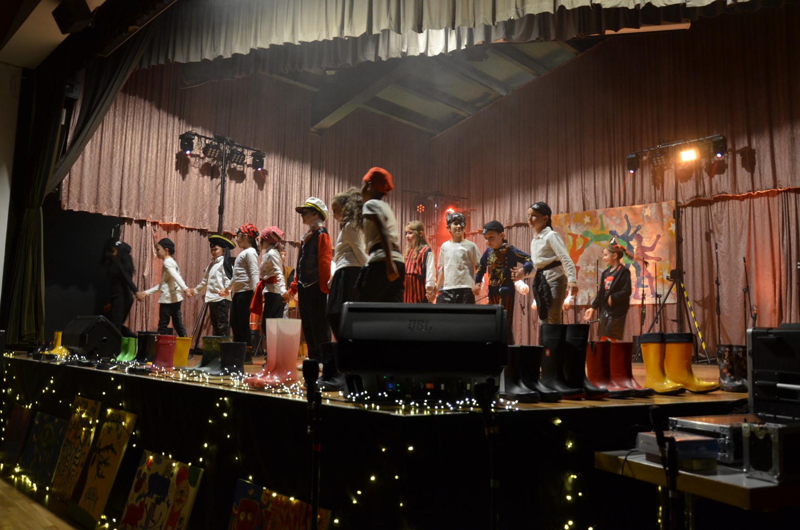Frau Placzek-Ouaissa gestaltete hierzu gemeinsam mit dem Arbeitskreis „Kulturelle Bildung“ und den beteiligten Lehrkräften und AG-Leiterinnen und Leitern ein buntes und vielfältiges Programm aus Tanz, Musik, Unterrichtsprodukten, Schauspiel, Sketch und Kunst. Doch nicht nur das Angebot war breit gefächert, als Gesamtschule von Klasse 1 bis Klasse 13 waren auch auf der Bühne von der Grundschule bis zur IKL-Klasse und weiter zur Oberstufe viele Altersstufen und Schulzweige vertreten. Piratinnen und Piraten traten auf, es wurde in Gummistiefeln getanzt, Romeos und Julias berühmte Balkonszene inszeniert, gleichzeitig getanzt, gesteppt und getrommelt, über die eigene Identität nachgedacht sowie beeindruckend Saxophon und weitere Instrumente gespielt.