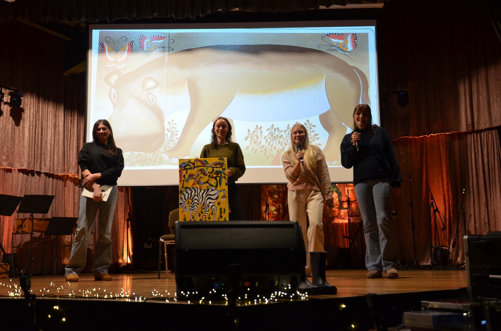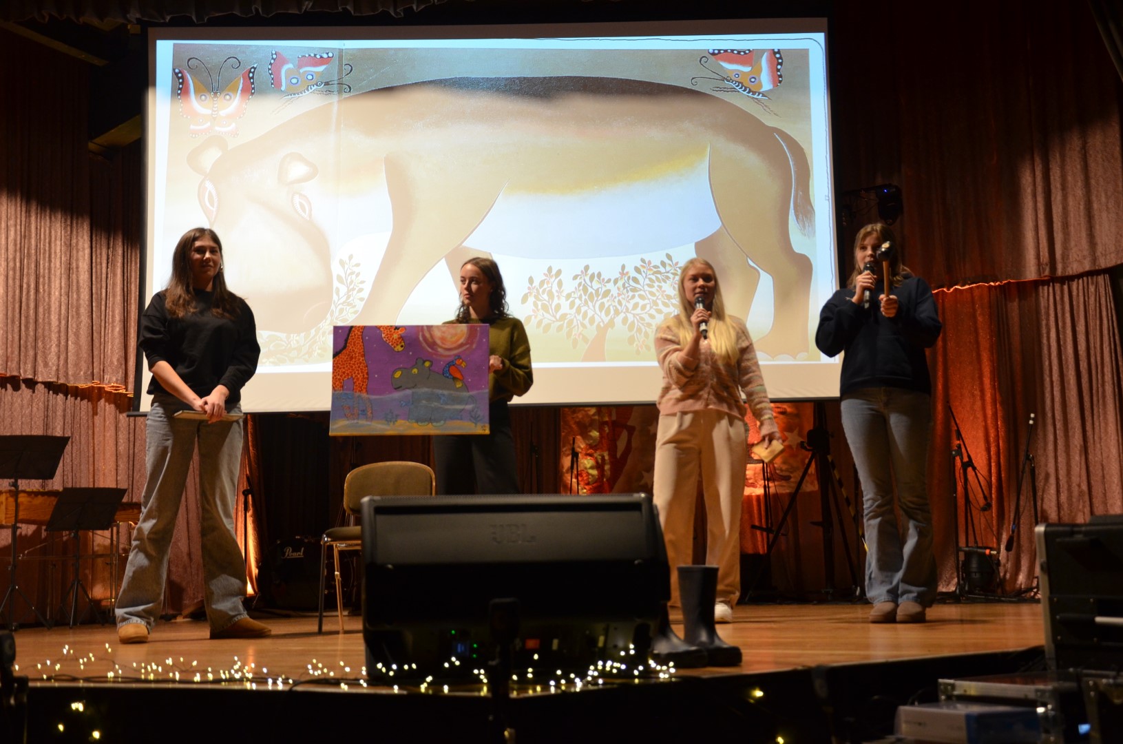 Ein weiteres Highlight der Abendveranstaltung war die Versteigerung von „Tingatinga“-Gemälden, die von der Tansania-Reisegruppe gezeichnet wurden. Drei farbenfrohe Tiergemälde wurden für insgesamt 250€ erworben. Das Geld geht neben den Einnahmen aus dem weiteren Verkauf weiterer Werke über den Förderverein der Europaschule als Unterstützung an die Partnerschule in Tansania und unterstützt das „Schulgeld für Kisomachi“.