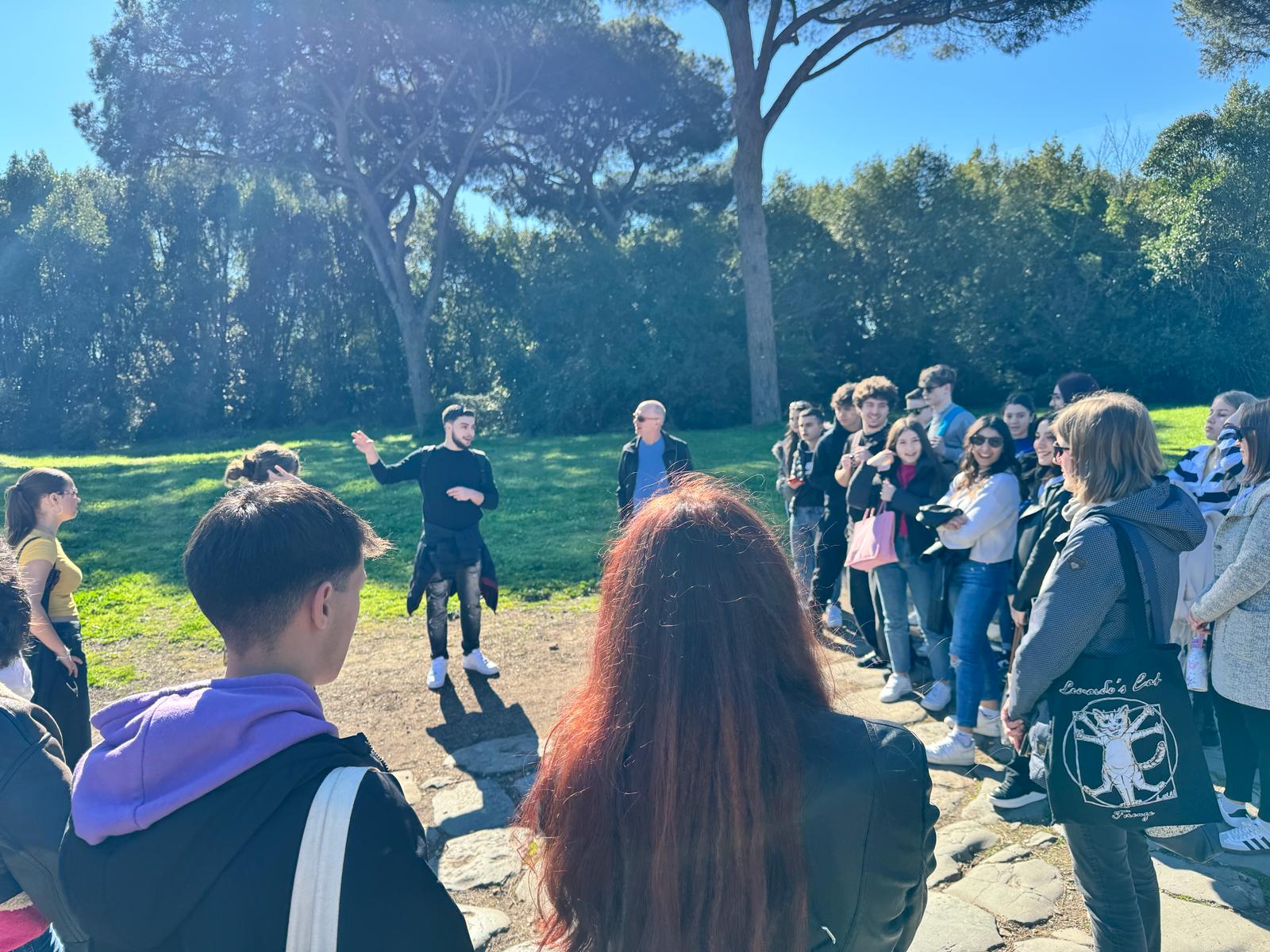 Neben der Arbeit am Thema des Projekts kam auch das interkulturelle Lernen nicht zu kurz. Die italienischen Schülerinnen und Schüler hatten für die Ausflüge nach Rom eine Stadtführung vorbereitet und so gab es viel über Sehenswürdigkeiten wie das Colosseum, die spanische Treppe und die Basilica zu lernen. Auf den Spuren des alten Roms wurde auch bei einem Ausflug in das nah gelegene Ostia Antica, einer Ausgrabungsstätte, gewandelt.