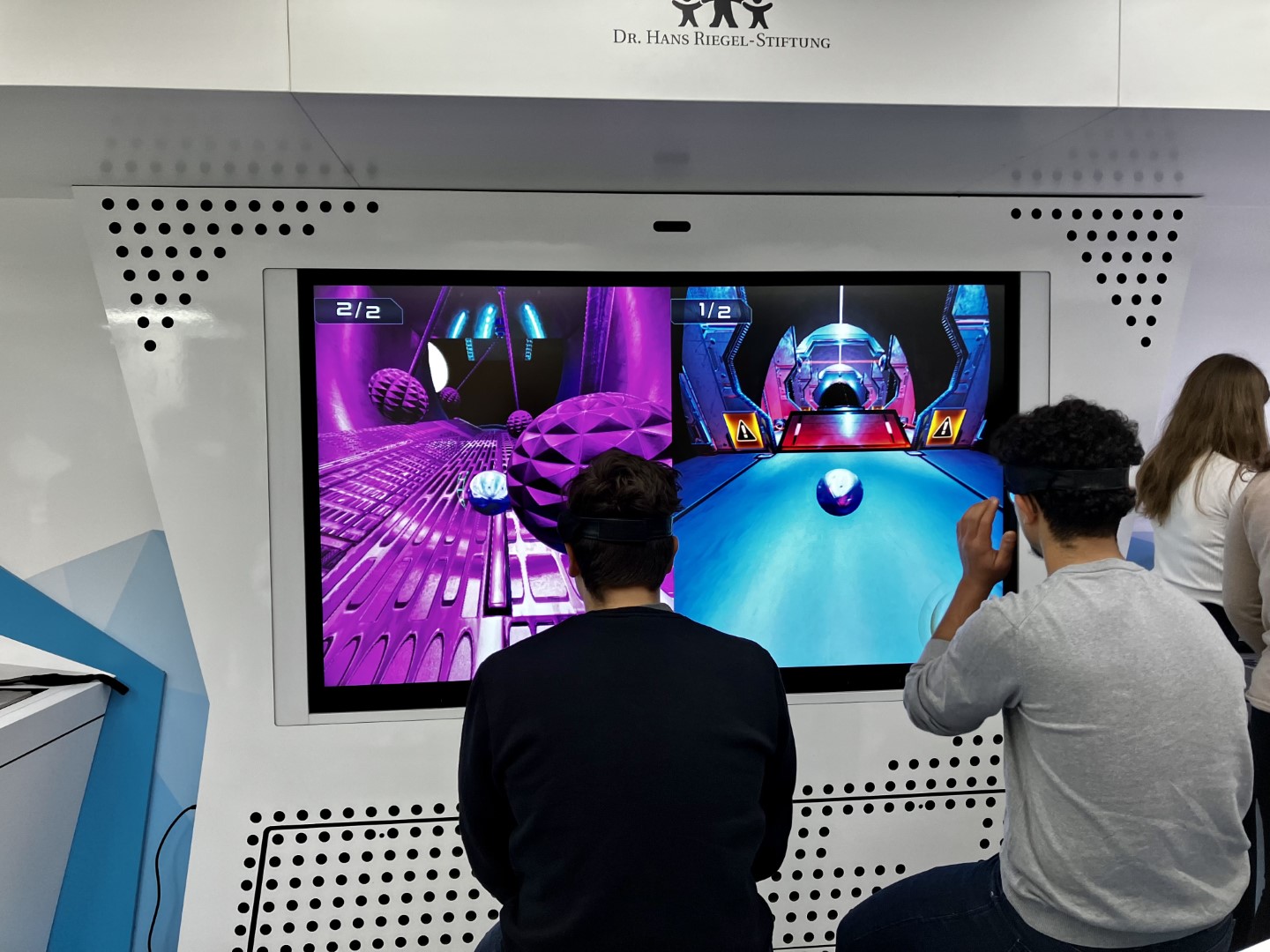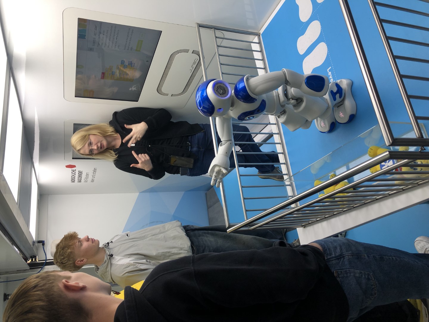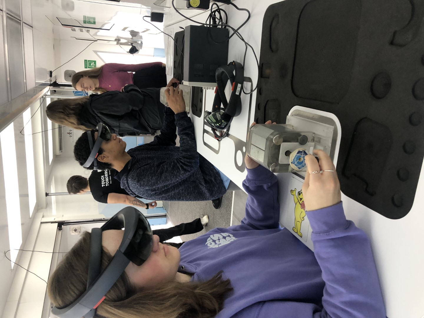 Vom 30.10.-02.11.23 hatten Schülerinnen und Schüler der 8. bis 11. Klassen Gelegenheit, im „TouchTomorrow-Truck“ die MINT-Welt von morgen kennenzulernen. Angeleitet von speziell geschulten MINT-Coaches (allesamt Naturwissenschaftler:innen) arbeiteten die Schüler:innen in Kleingruppen an verschiedenen Stationen aus Naturwissenschaft und Technik, die zeigten, was bereits in der heutigen, aber vor allem in der zukünftigen Lebens- und Arbeitswelt möglich ist. Neben einer Station, an der mittels Gedankensteuerung eine Bowlingkugel beschleunigt wurde, konnten die Schüler:innen u.a. einen Roboter programmieren oder das Arbeiten im virtuellen Raum erproben. MINT zum Anfassen als außerschulischer Lernort auf dem eigenen Schulhof – eine tolle Gelegenheit für Lernende (und Lehrende)! Der ausfahrbare Truck schafft es auf zwei Etagen für MINT zu begeistern und berufliche Perspektiven zu eröffnen, sowohl für ein mögliches Studium als auch eine passende Ausbildung. Unterstützt werden sie dabei von Berufsberater:innen. Insbesondere für Schulen im ländlicheren Raum, die keinen schnellen Zugriff auf Museen und weitere außerschulische Lernorte haben, ist der TouchTomorrow-Truck eine tolle Gelegenheit in die Welt von morgen einzutauchen.