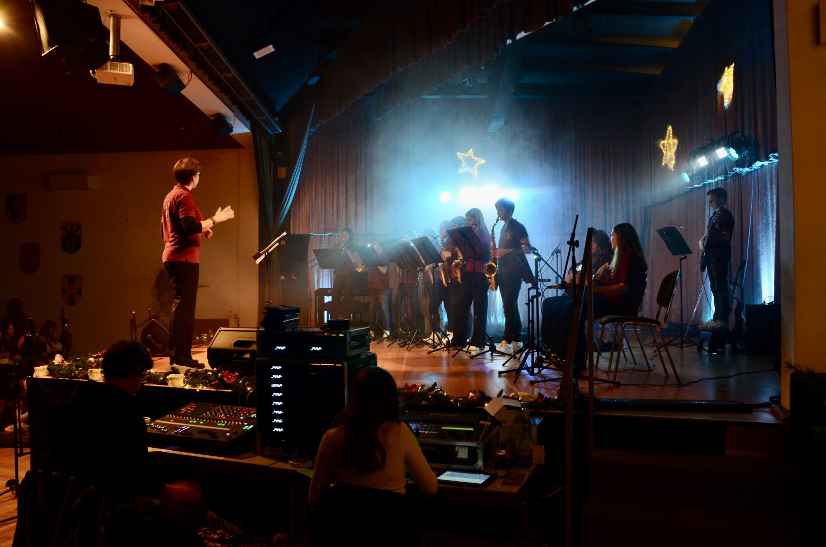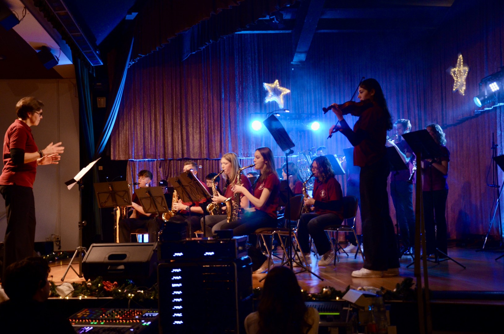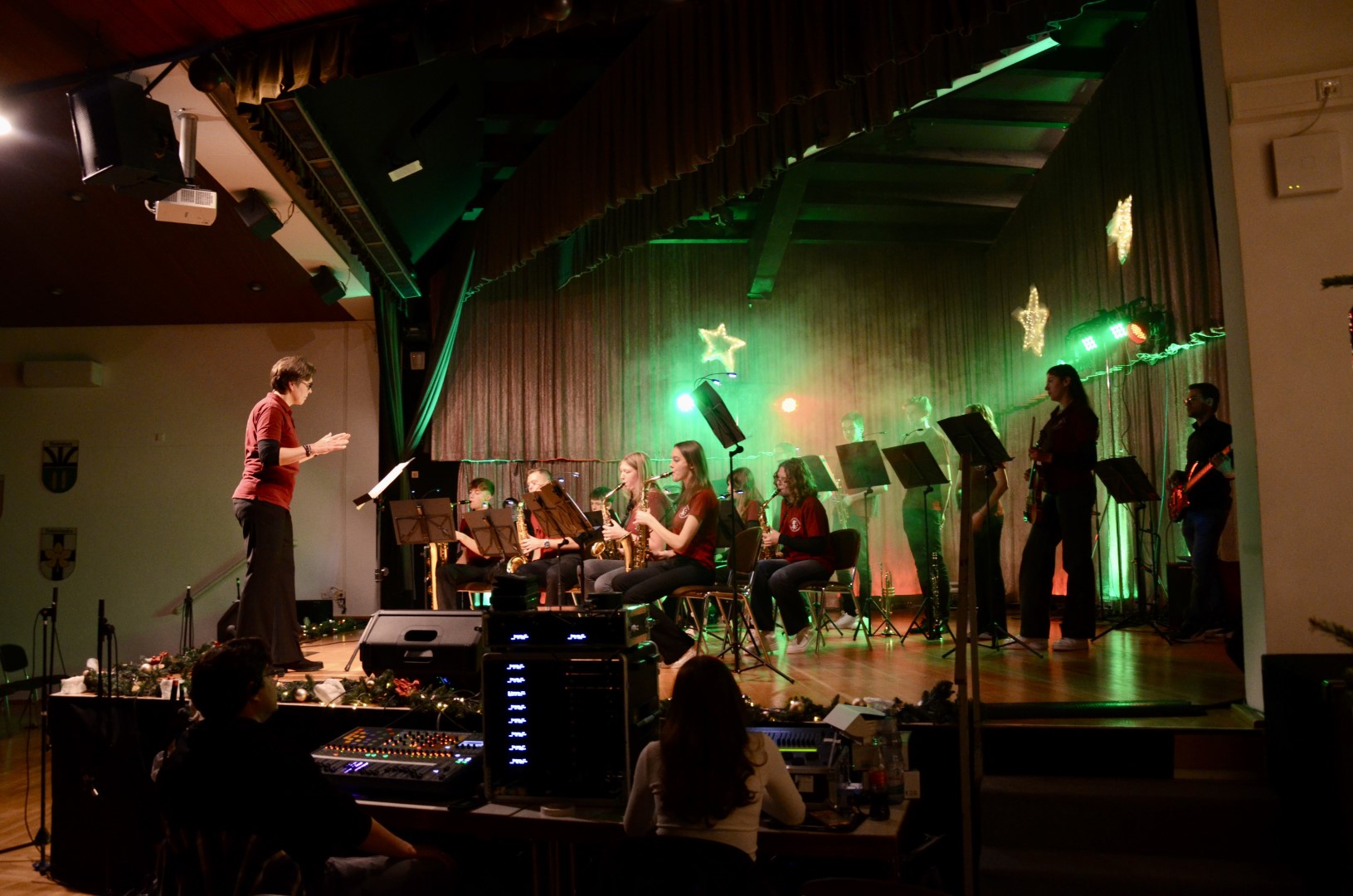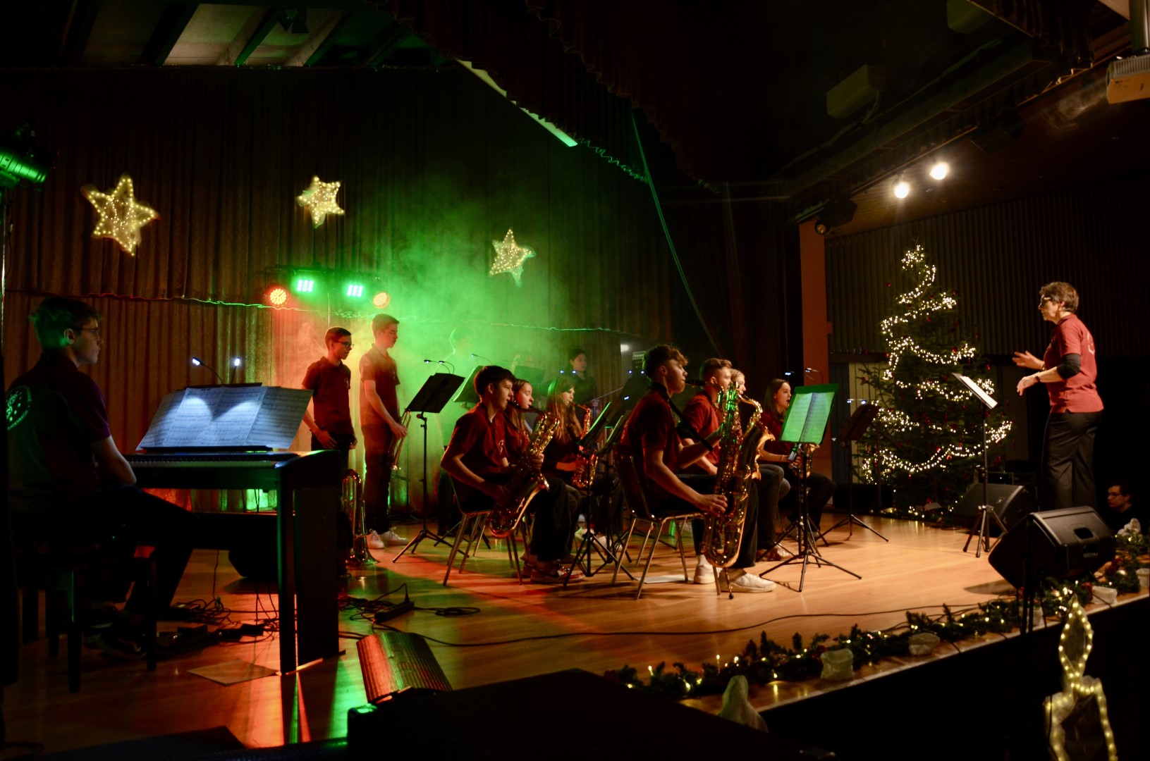 Auch in diesem Winter fand der traditionelle Weihnachtsmusikabend der ESG statt, am 19. Dezember 2023 im Haus des Gastes in Gladenbach. Den Zuschauerinnen und Zuschauer wurde im vollen Saal in vielerlei Hinsicht ein vielfältiges Programm geboten: Vielfältig hinsichtlich der Musikerinnen und Musiker, die von der Grundschule bis zur Oberstufe auf der Bühne standen, vielfältig auch mit Blick auf die Instrumente, die u.a. von Gitarren, Geigen, Klarinetten, Klavier, Bass, Trompeten und Trommeln bis hin zu Saxophonen reichten. Vielfältig war auch das Programmangebot an diesem Abend: vom „Kartoffelboogie“ des Grundschulchors, der vom Förderstufenleiter Marcus Zihn begleitet wurde, bis hin zu klassischen Liedern wie „Last Christmas“, welches uns an diesem Abend in drei verschiedenen Varianten präsentiert wurde: mal von der Chor-AG, der von Lea Happel geleitet wird, mal im Lehrerinnen und Lehrer-Trio in einer ganz eigenen, humorvollen Version („Letztes Jahr an Weihnachten“), bis hin zu einem imposanten Saxophonquartett der Bigband, unterstützt und geleitet von Kristina Guhl, neben der BigBand auch Leiterin der Juniorband sowie der Musikklassen der Förderstufe. Vielfältig auch mit Blick auf das Unterhaltungsangebot: neben ruhigen Gitarrenstücken wie „Hallelujah“ etwa auch das auf einem mittelalterlichen Lied basierende „O Come, O Come, Emmanuel“. Hierfür kam die Juniorband bei stark gedimmten, dunkelblauem Licht in dunklen Gewändern und mit reichlich Nebel auf die Bühne – ein atmosphärisches Highlight des Abends. Die von Ralf Erkel geleitete Keyboard- und Show-AG heizte mit drei modernen Stücken („Count On Me“, „Promise“ und „I See Fire“) den Saal ein. Der Lehrerinnen und Lehrerchor präsentierte sich mit zwei Stücken und äußerte mit der jüdischen Hymne „Hine mah tov“ den Wunsch nach Frieden in Israel und Palästina. Als gemeinsamer Abschluss wurde mit allen Anwesenden im Saal „Oh du fröhliche“ gesungen.