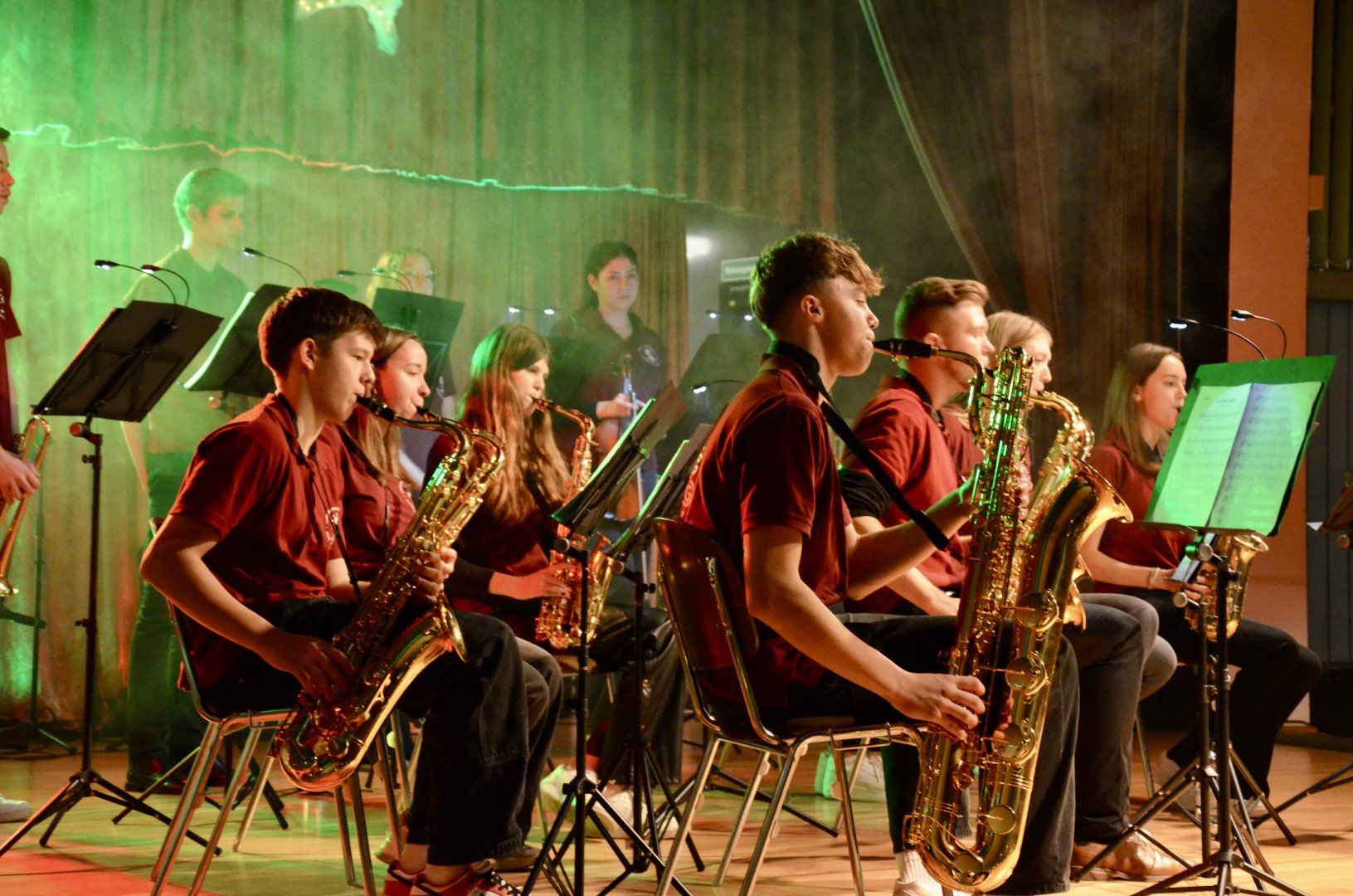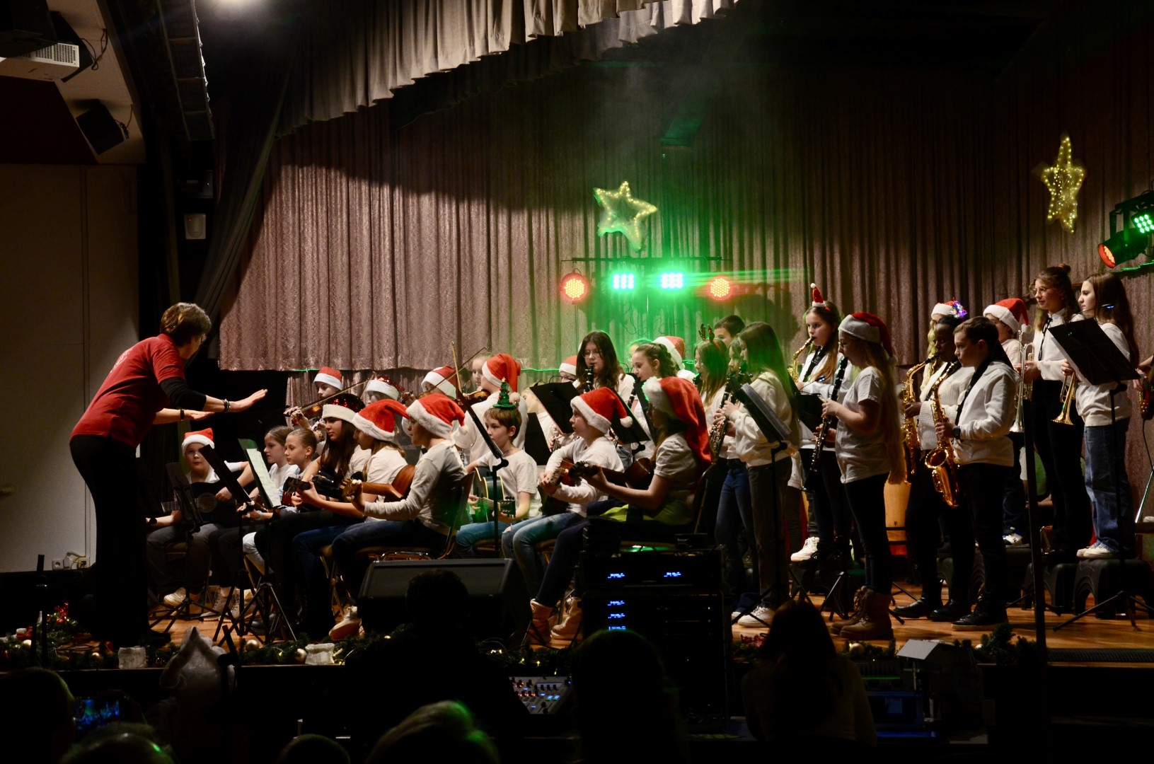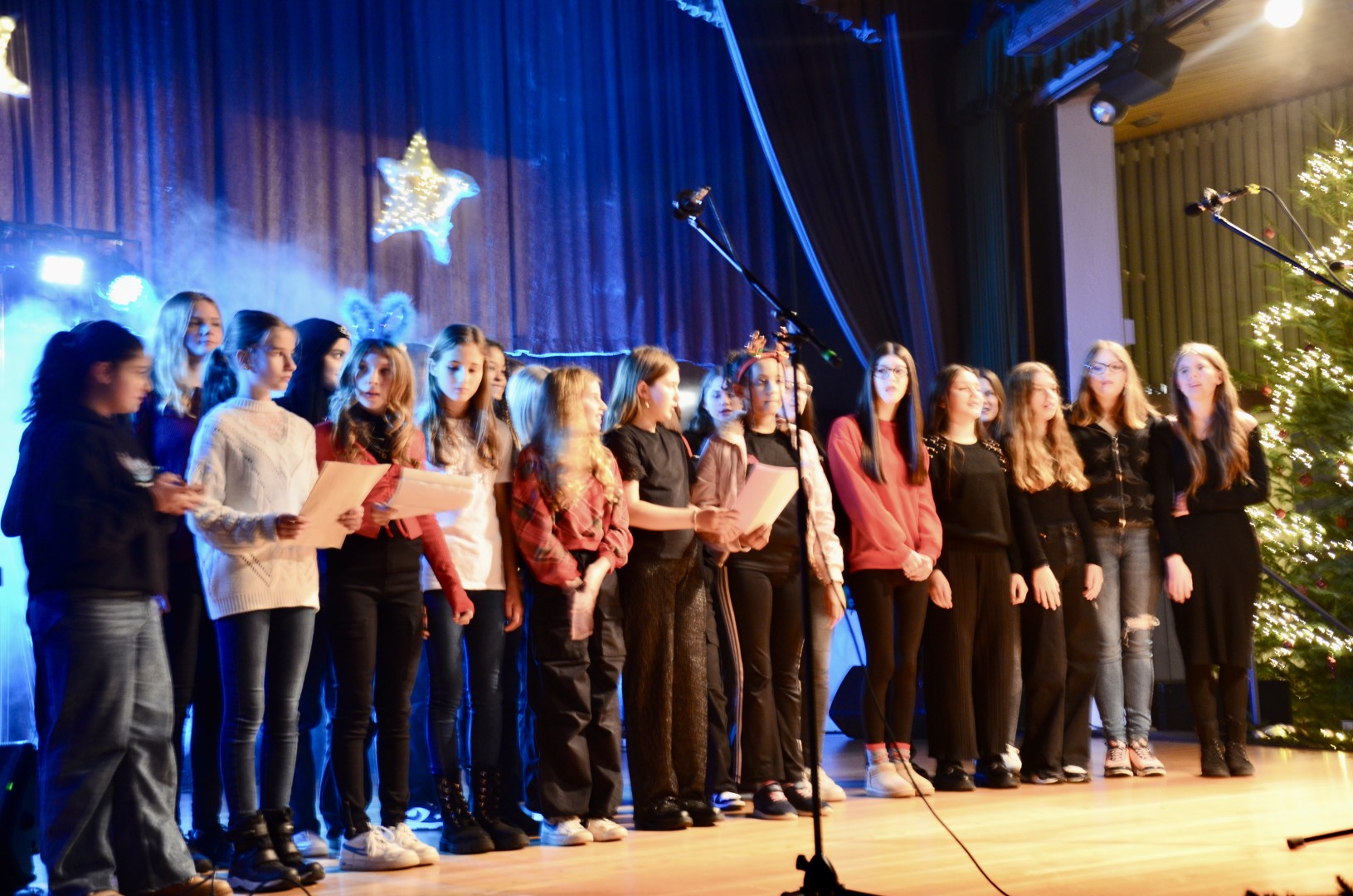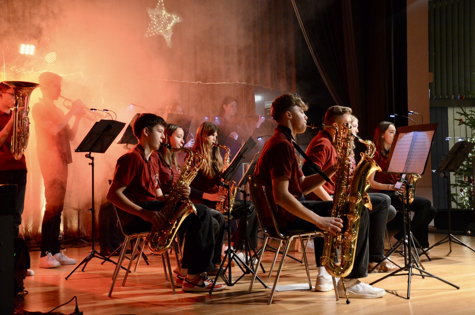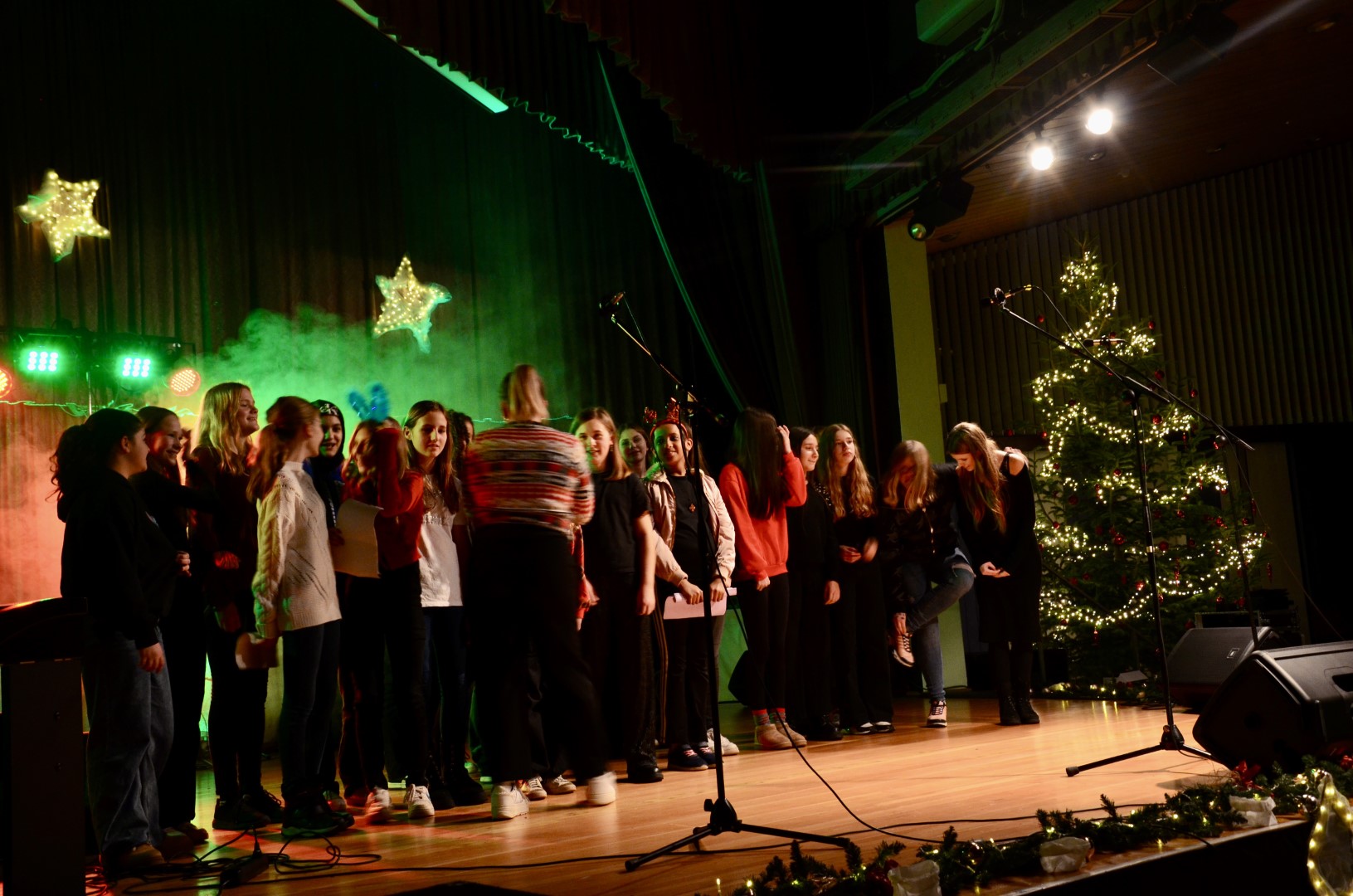 Auch in diesem Winter fand der traditionelle Weihnachtsmusikabend der ESG statt, am 19. Dezember 2023 im Haus des Gastes in Gladenbach. Den Zuschauerinnen und Zuschauer wurde im vollen Saal in vielerlei Hinsicht ein vielfältiges Programm geboten: Vielfältig hinsichtlich der Musikerinnen und Musiker, die von der Grundschule bis zur Oberstufe auf der Bühne standen, vielfältig auch mit Blick auf die Instrumente, die u.a. von Gitarren, Geigen, Klarinetten, Klavier, Bass, Trompeten und Trommeln bis hin zu Saxophonen reichten. Vielfältig war auch das Programmangebot an diesem Abend: vom „Kartoffelboogie“ des Grundschulchors, der vom Förderstufenleiter Marcus Zihn begleitet wurde, bis hin zu klassischen Liedern wie „Last Christmas“, welches uns an diesem Abend in drei verschiedenen Varianten präsentiert wurde: mal von der Chor-AG, der von Lea Happel geleitet wird, mal im Lehrerinnen und Lehrer-Trio in einer ganz eigenen, humorvollen Version („Letztes Jahr an Weihnachten“), bis hin zu einem imposanten Saxophonquartett der Bigband, unterstützt und geleitet von Kristina Guhl, neben der BigBand auch Leiterin der Juniorband sowie der Musikklassen der Förderstufe. Vielfältig auch mit Blick auf das Unterhaltungsangebot: neben ruhigen Gitarrenstücken wie „Hallelujah“ etwa auch das auf einem mittelalterlichen Lied basierende „O Come, O Come, Emmanuel“. Hierfür kam die Juniorband bei stark gedimmten, dunkelblauem Licht in dunklen Gewändern und mit reichlich Nebel auf die Bühne – ein atmosphärisches Highlight des Abends. Die von Ralf Erkel geleitete Keyboard- und Show-AG heizte mit drei modernen Stücken („Count On Me“, „Promise“ und „I See Fire“) den Saal ein. Der Lehrerinnen und Lehrerchor präsentierte sich mit zwei Stücken und äußerte mit der jüdischen Hymne „Hine mah tov“ den Wunsch nach Frieden in Israel und Palästina. Als gemeinsamer Abschluss wurde mit allen Anwesenden im Saal „Oh du fröhliche“ gesungen.