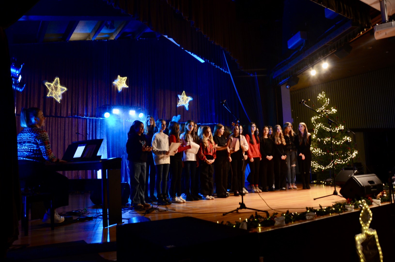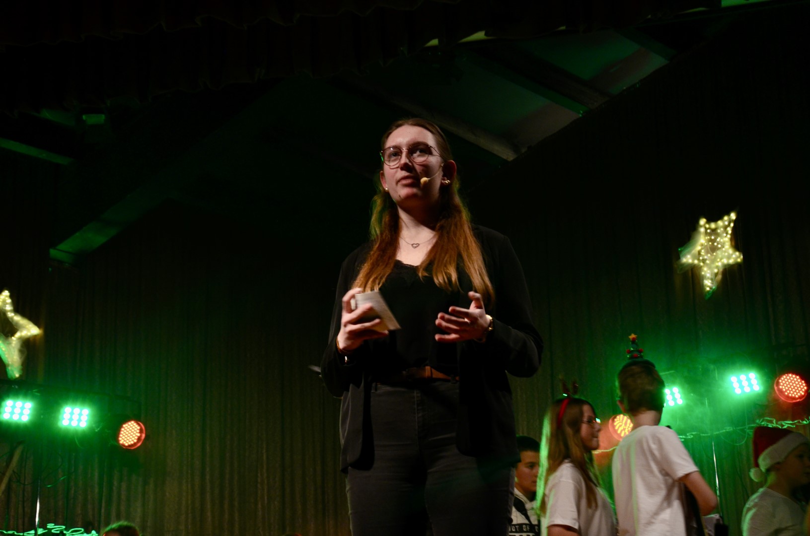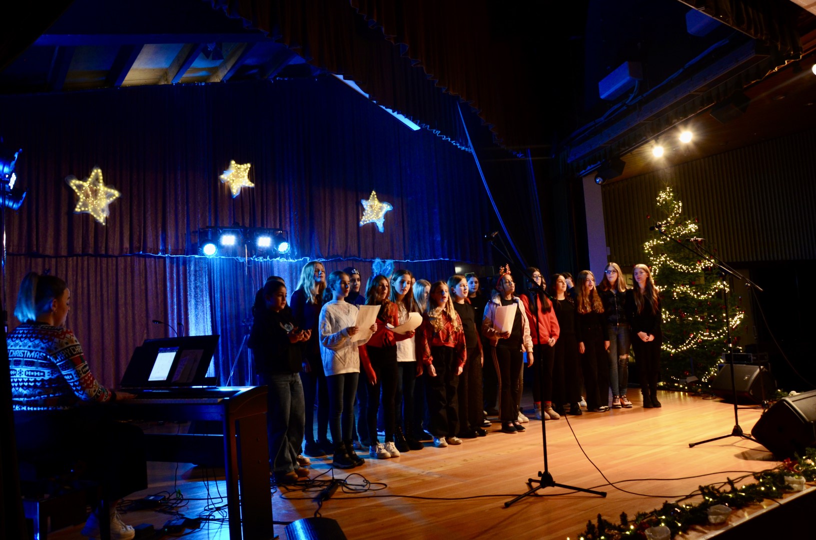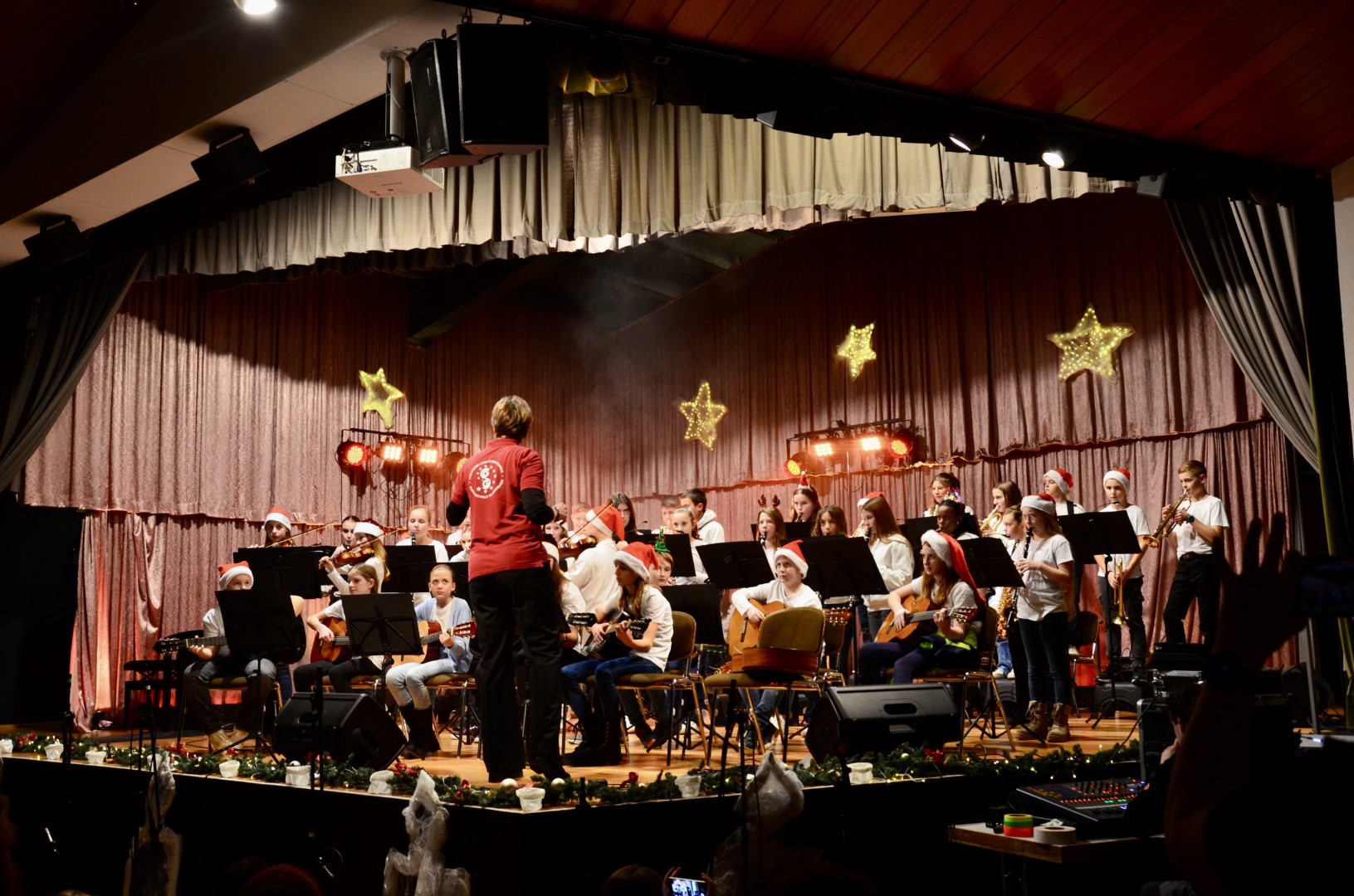 Auch in diesem Winter fand der traditionelle Weihnachtsmusikabend der ESG statt, am 19. Dezember 2023 im Haus des Gastes in Gladenbach. Den Zuschauerinnen und Zuschauer wurde im vollen Saal in vielerlei Hinsicht ein vielfältiges Programm geboten: Vielfältig hinsichtlich der Musikerinnen und Musiker, die von der Grundschule bis zur Oberstufe auf der Bühne standen, vielfältig auch mit Blick auf die Instrumente, die u.a. von Gitarren, Geigen, Klarinetten, Klavier, Bass, Trompeten und Trommeln bis hin zu Saxophonen reichten. Vielfältig war auch das Programmangebot an diesem Abend: vom „Kartoffelboogie“ des Grundschulchors, der vom Förderstufenleiter Marcus Zihn begleitet wurde, bis hin zu klassischen Liedern wie „Last Christmas“, welches uns an diesem Abend in drei verschiedenen Varianten präsentiert wurde: mal von der Chor-AG, der von Lea Happel geleitet wird, mal im Lehrerinnen und Lehrer-Trio in einer ganz eigenen, humorvollen Version („Letztes Jahr an Weihnachten“), bis hin zu einem imposanten Saxophonquartett der Bigband, unterstützt und geleitet von Kristina Guhl, neben der BigBand auch Leiterin der Juniorband sowie der Musikklassen der Förderstufe. Vielfältig auch mit Blick auf das Unterhaltungsangebot: neben ruhigen Gitarrenstücken wie „Hallelujah“ etwa auch das auf einem mittelalterlichen Lied basierende „O Come, O Come, Emmanuel“. Hierfür kam die Juniorband bei stark gedimmten, dunkelblauem Licht in dunklen Gewändern und mit reichlich Nebel auf die Bühne – ein atmosphärisches Highlight des Abends. Die von Ralf Erkel geleitete Keyboard- und Show-AG heizte mit drei modernen Stücken („Count On Me“, „Promise“ und „I See Fire“) den Saal ein. Der Lehrerinnen und Lehrerchor präsentierte sich mit zwei Stücken und äußerte mit der jüdischen Hymne „Hine mah tov“ den Wunsch nach Frieden in Israel und Palästina. Als gemeinsamer Abschluss wurde mit allen Anwesenden im Saal „Oh du fröhliche“ gesungen.