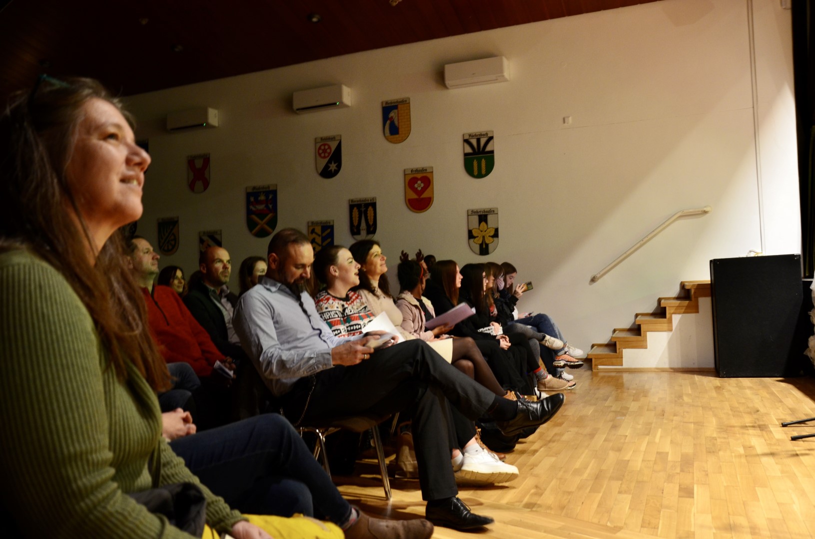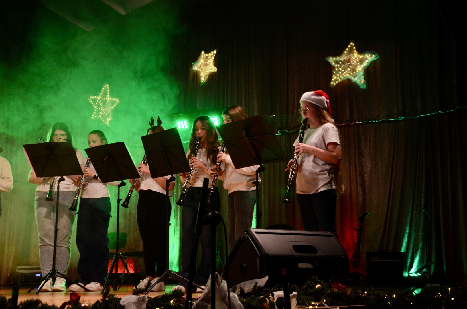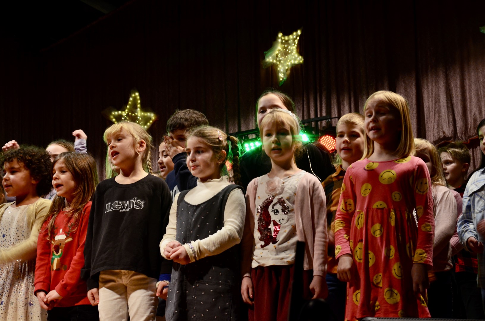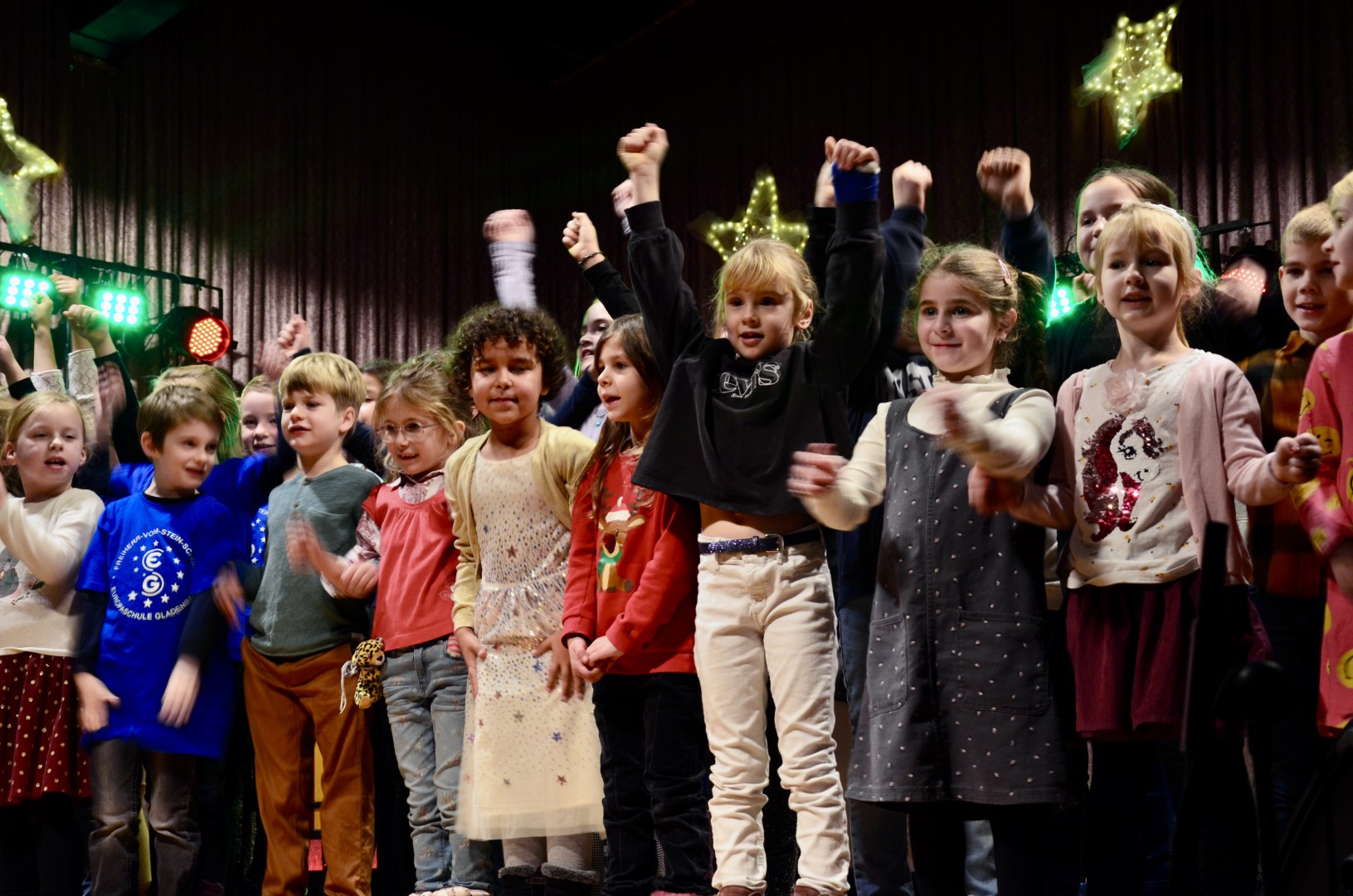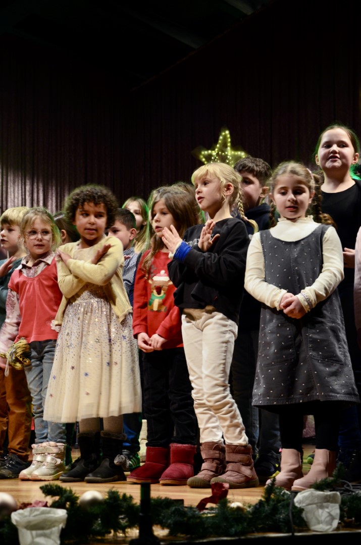 Auch in diesem Winter fand der traditionelle Weihnachtsmusikabend der ESG statt, am 19. Dezember 2023 im Haus des Gastes in Gladenbach. Den Zuschauerinnen und Zuschauer wurde im vollen Saal in vielerlei Hinsicht ein vielfältiges Programm geboten: Vielfältig hinsichtlich der Musikerinnen und Musiker, die von der Grundschule bis zur Oberstufe auf der Bühne standen, vielfältig auch mit Blick auf die Instrumente, die u.a. von Gitarren, Geigen, Klarinetten, Klavier, Bass, Trompeten und Trommeln bis hin zu Saxophonen reichten. Vielfältig war auch das Programmangebot an diesem Abend: vom „Kartoffelboogie“ des Grundschulchors, der vom Förderstufenleiter Marcus Zihn begleitet wurde, bis hin zu klassischen Liedern wie „Last Christmas“, welches uns an diesem Abend in drei verschiedenen Varianten präsentiert wurde: mal von der Chor-AG, der von Lea Happel geleitet wird, mal im Lehrerinnen und Lehrer-Trio in einer ganz eigenen, humorvollen Version („Letztes Jahr an Weihnachten“), bis hin zu einem imposanten Saxophonquartett der Bigband, unterstützt und geleitet von Kristina Guhl, neben der BigBand auch Leiterin der Juniorband sowie der Musikklassen der Förderstufe. Vielfältig auch mit Blick auf das Unterhaltungsangebot: neben ruhigen Gitarrenstücken wie „Hallelujah“ etwa auch das auf einem mittelalterlichen Lied basierende „O Come, O Come, Emmanuel“. Hierfür kam die Juniorband bei stark gedimmten, dunkelblauem Licht in dunklen Gewändern und mit reichlich Nebel auf die Bühne – ein atmosphärisches Highlight des Abends. Die von Ralf Erkel geleitete Keyboard- und Show-AG heizte mit drei modernen Stücken („Count On Me“, „Promise“ und „I See Fire“) den Saal ein. Der Lehrerinnen und Lehrerchor präsentierte sich mit zwei Stücken und äußerte mit der jüdischen Hymne „Hine mah tov“ den Wunsch nach Frieden in Israel und Palästina. Als gemeinsamer Abschluss wurde mit allen Anwesenden im Saal „Oh du fröhliche“ gesungen.