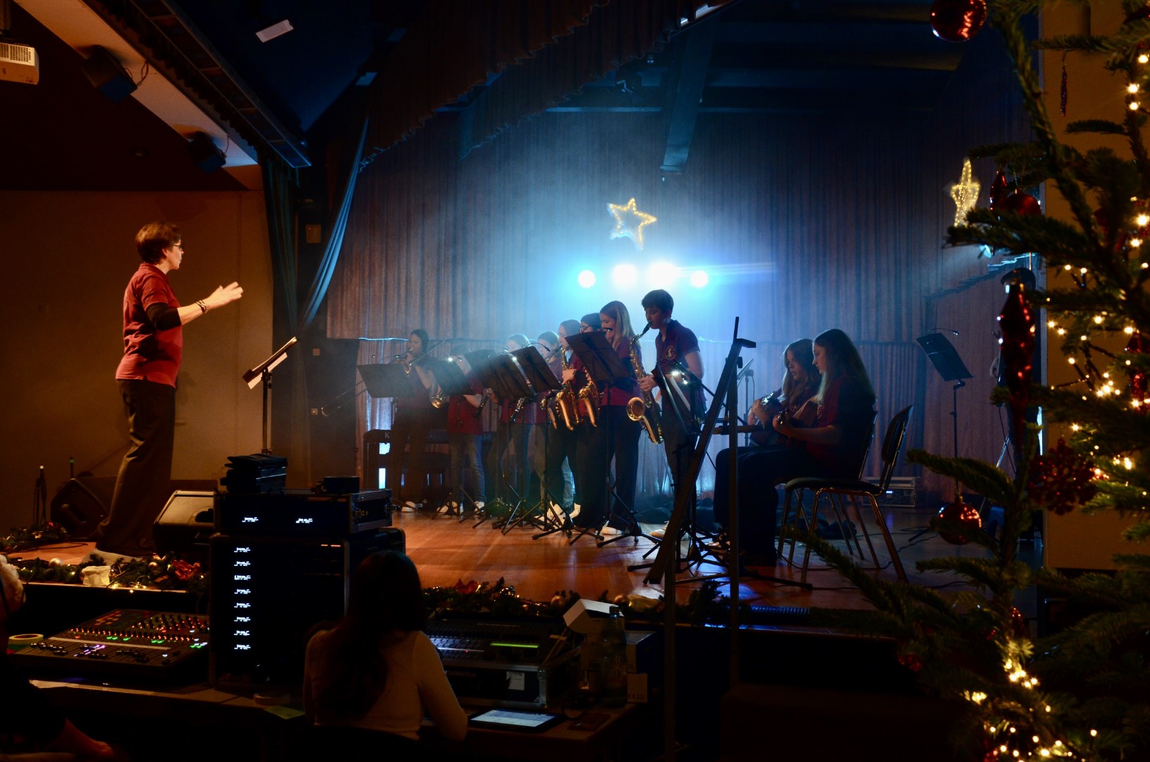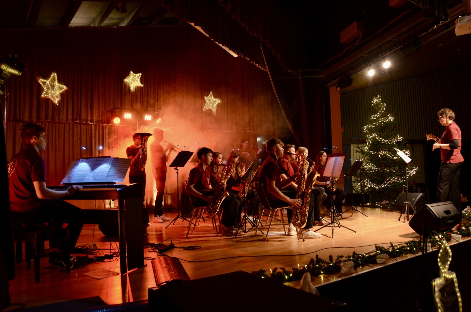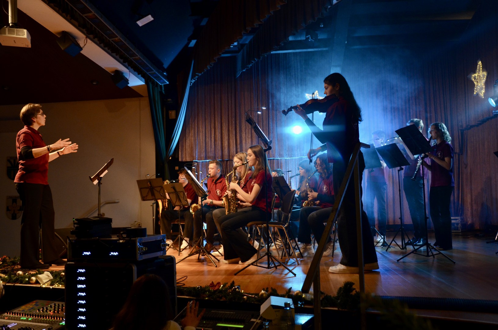 Mit insgesamt 29 Stücken hinterließ der Weihnachtsmusikabend auch in diesem Jahr einen unvergesslichen Eindruck. Lilli Jakobi, Schülerin des aktuellen Abiturjahrgangs, führte das Publikum durch den Abend und dankte allen Anwesenden, die gekommen waren, um gemeinsam in toller Atmosphäre die „Besinnlichkeit der Zeit“ zu genießen. Vielfältig war der Abend auch hinsichtlich der vielen Beteiligten und Unterstützerinnen und Unterstützer, an die Schulleiter Dr. Holger Schmenk gemeinsam mit Dr. Stefan Balzter, Leiter des Fachbereichs Musik, Dankeswünsche richteten: sie würdigten den enormen Einsatz aller Musikerinnen und Musiker sowie der Musiklehrerinnen und Musiklehrer, dankten den AG-Leiterinnen und Leiter, der Moderatorin Lillian Jakobi sowie der Technik-AG und allen beteiligten Hausmeistern, ohne die dieser Abend nicht möglich gewesen wäre. Viel Zeit und Energie haben diesen Abend „zu dem gemacht, was er ist“, lobte Dr. Stefan Balzter den gelungenen Jahresabschluss.