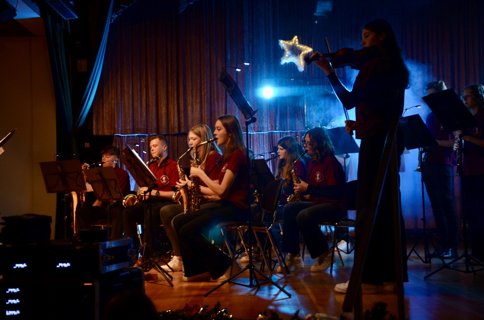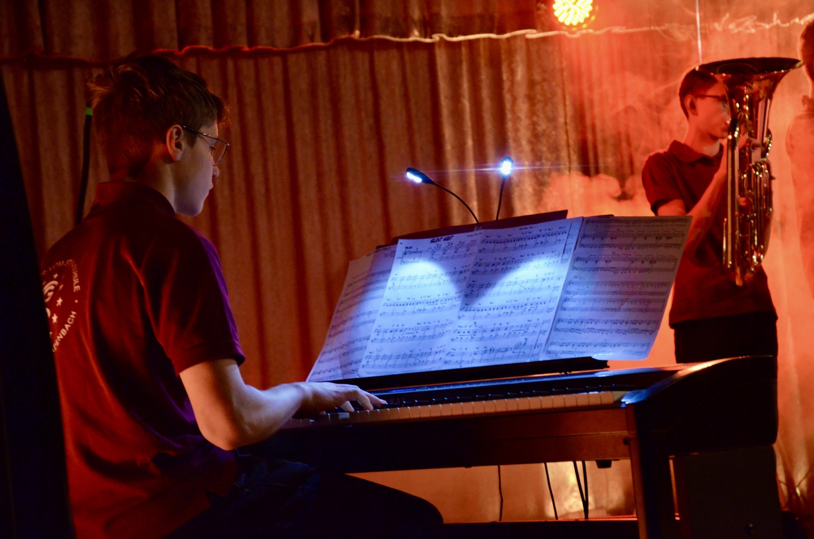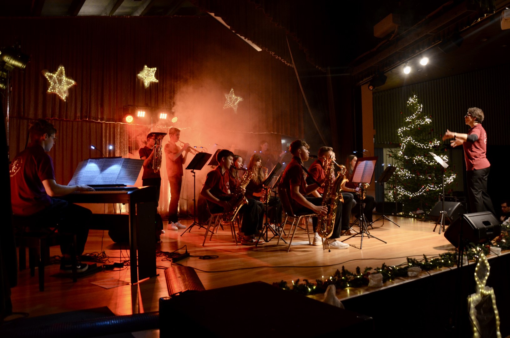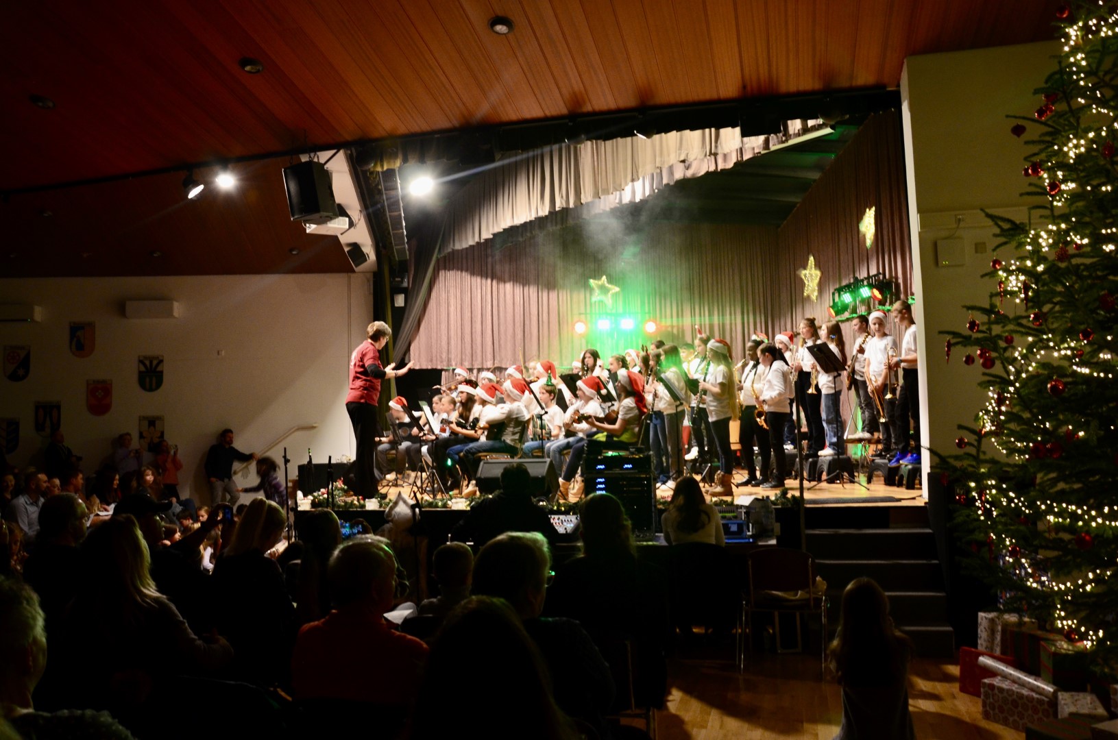 Mit insgesamt 29 Stücken hinterließ der Weihnachtsmusikabend auch in diesem Jahr einen unvergesslichen Eindruck. Lilli Jakobi, Schülerin des aktuellen Abiturjahrgangs, führte das Publikum durch den Abend und dankte allen Anwesenden, die gekommen waren, um gemeinsam in toller Atmosphäre die „Besinnlichkeit der Zeit“ zu genießen. Vielfältig war der Abend auch hinsichtlich der vielen Beteiligten und Unterstützerinnen und Unterstützer, an die Schulleiter Dr. Holger Schmenk gemeinsam mit Dr. Stefan Balzter, Leiter des Fachbereichs Musik, Dankeswünsche richteten: sie würdigten den enormen Einsatz aller Musikerinnen und Musiker sowie der Musiklehrerinnen und Musiklehrer, dankten den AG-Leiterinnen und Leiter, der Moderatorin Lillian Jakobi sowie der Technik-AG und allen beteiligten Hausmeistern, ohne die dieser Abend nicht möglich gewesen wäre. Viel Zeit und Energie haben diesen Abend „zu dem gemacht, was er ist“, lobte Dr. Stefan Balzter den gelungenen Jahresabschluss.